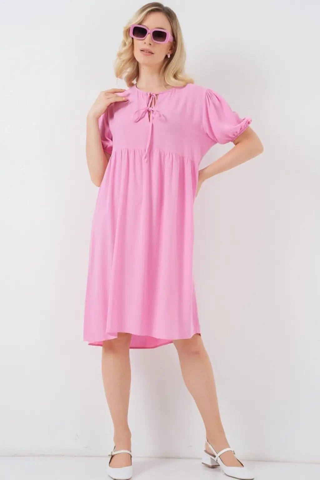 Kadın Kısa Kollu Balıkçı Yaka Derin Yırtmaç Detay Viskon Elbise