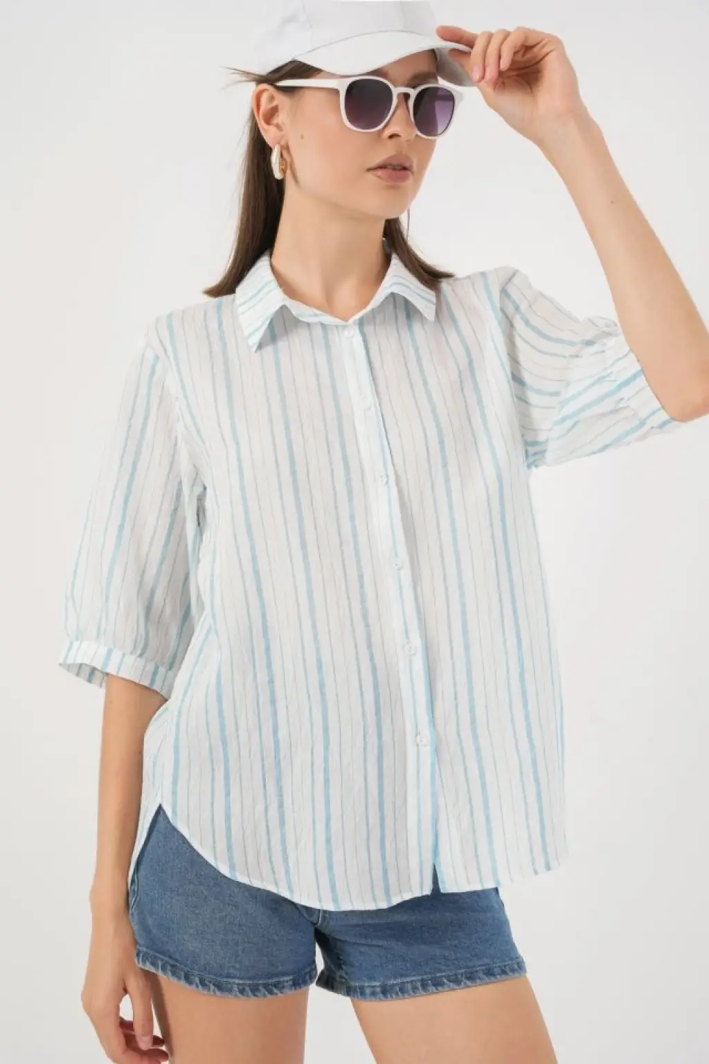 Çizgili Kısa Kol Gömlek 20345 - A.Mavi