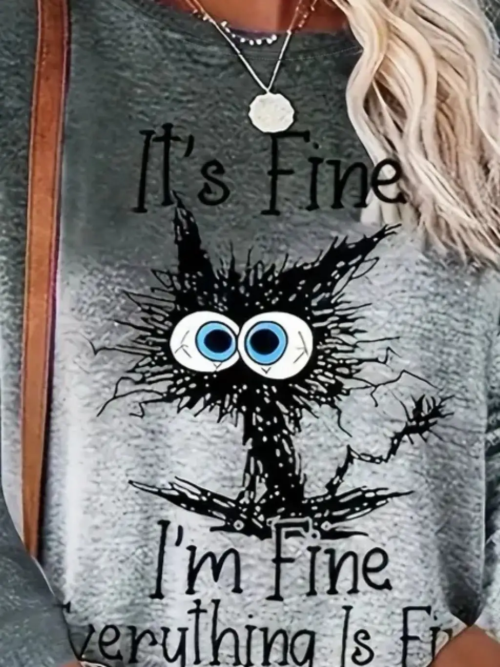Kadın Uzun Kollu Bisiklet Yaka Baskılı Iki Iplik Bluz
