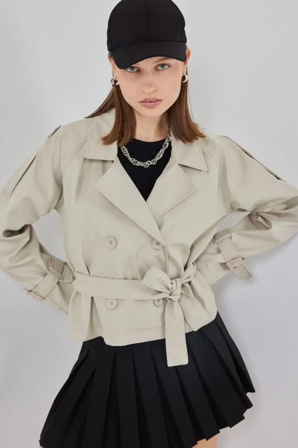 Bolero Detaylı Kemerli Araboy Trençkot -Taş