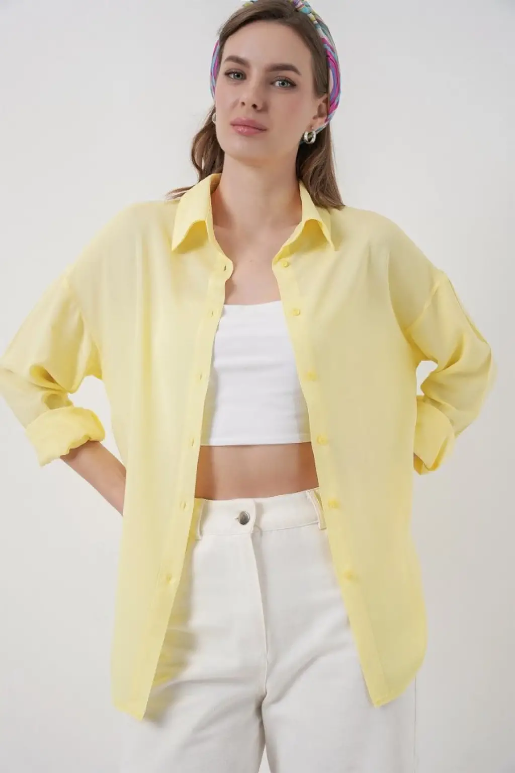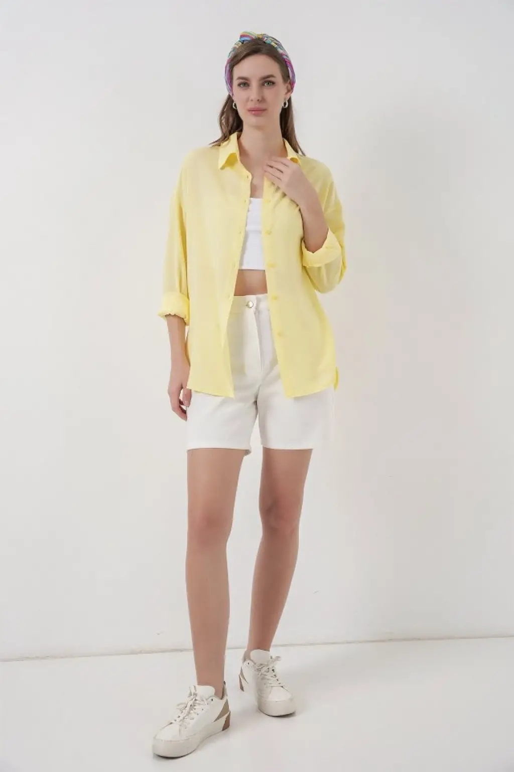 Kadın Uzun Kollu Salaş Gömlek Ve şort Keten Ikili Takım