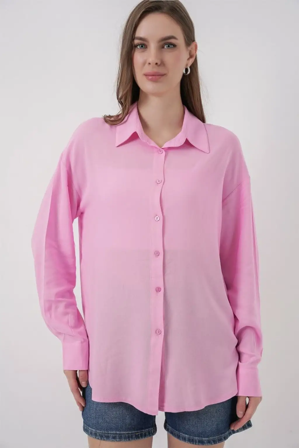 Oversize Viskon Gömlek 3785 - Pembe