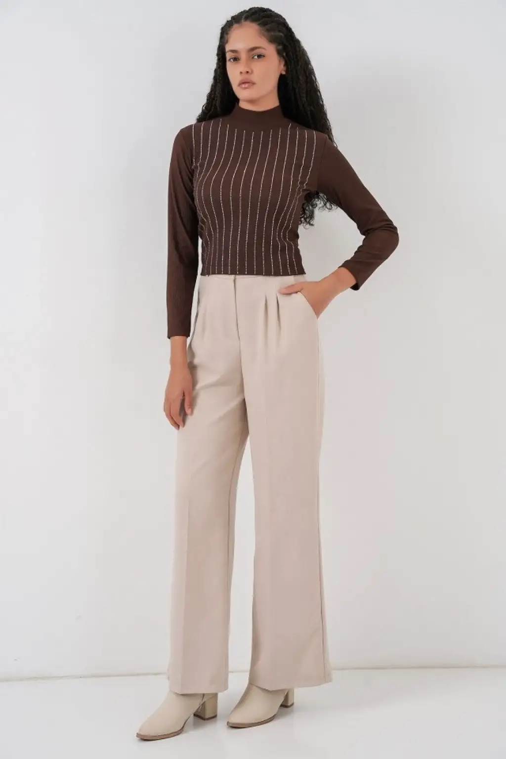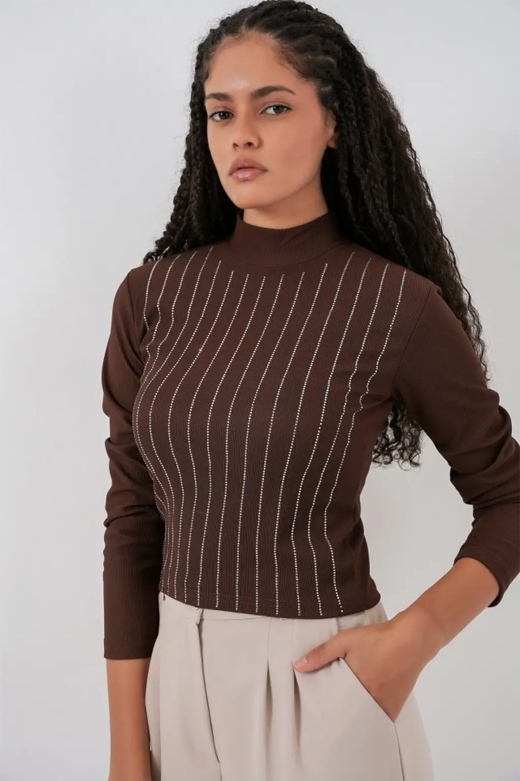 Halter Yaka Çıtçıtlı Body 972 - Kahverengi