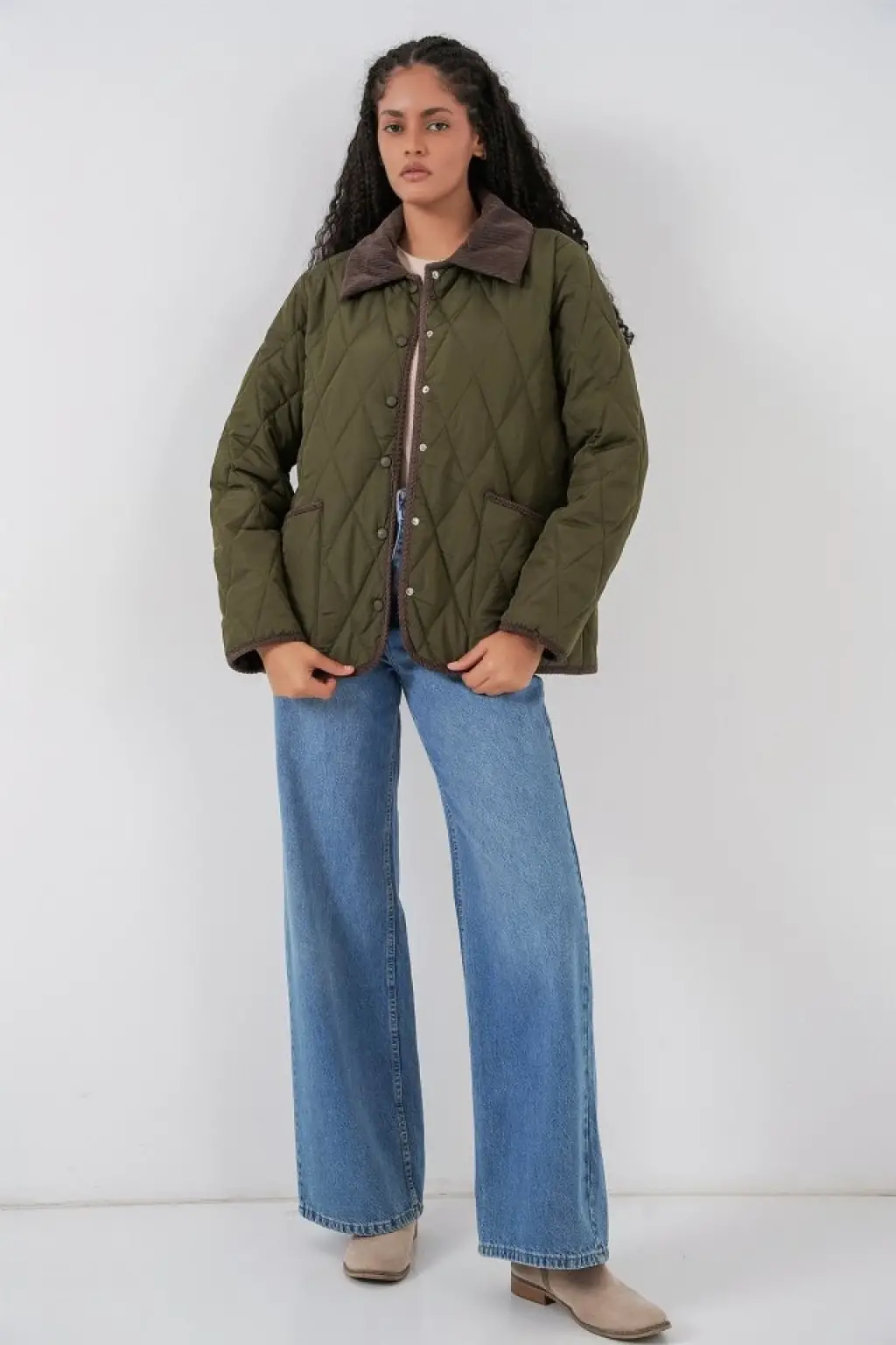 Kapitone Oversize Mont 5226 - Haki Kahve
