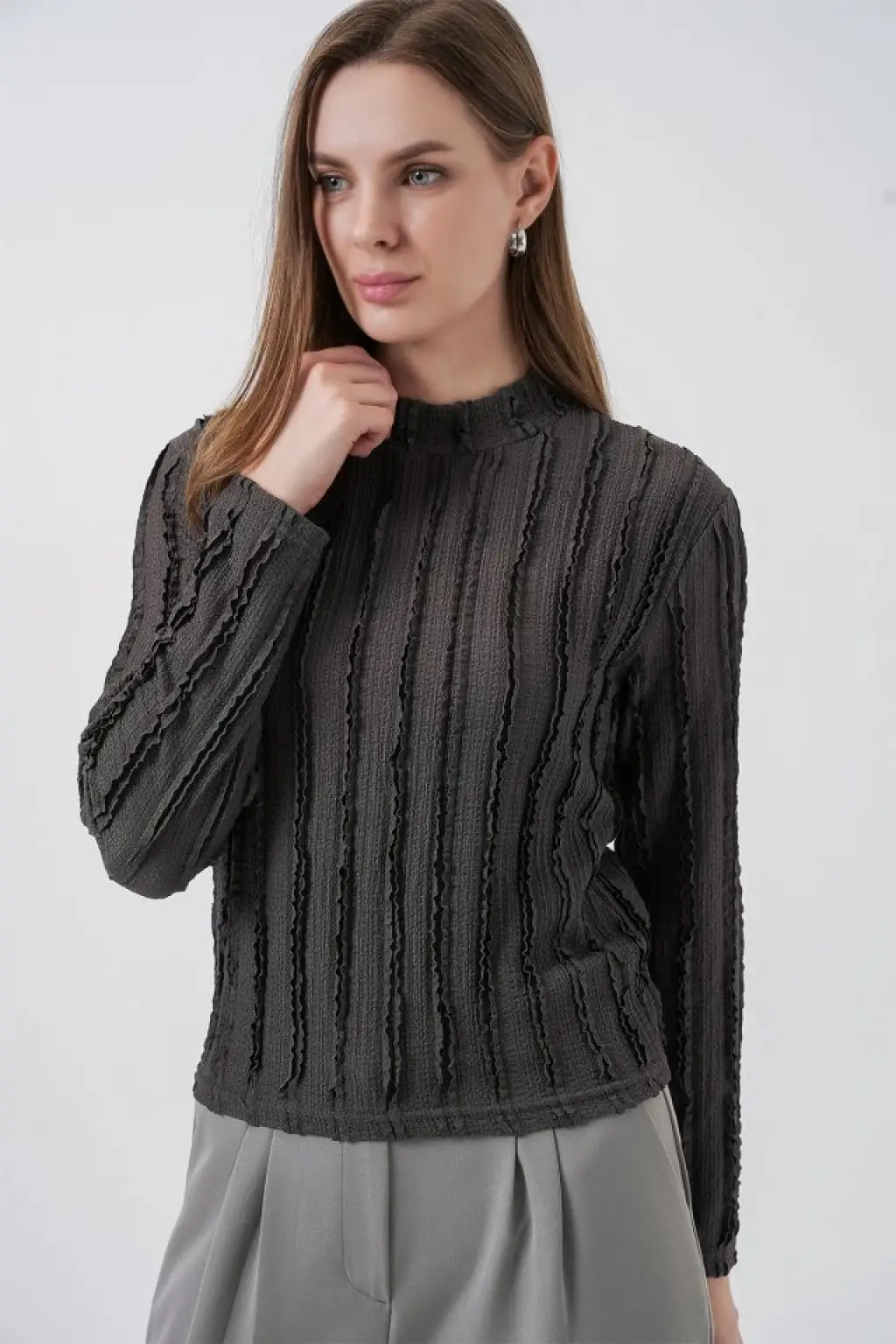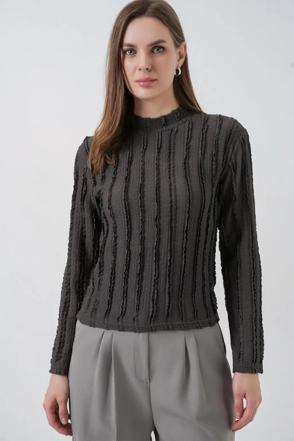 Dokulu Esnek Örme Bluz 975 - Antrasit