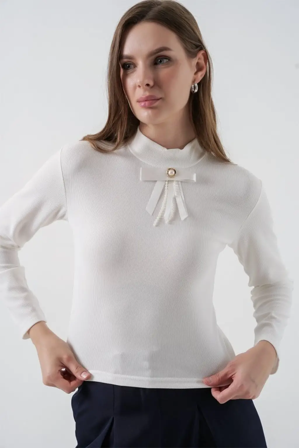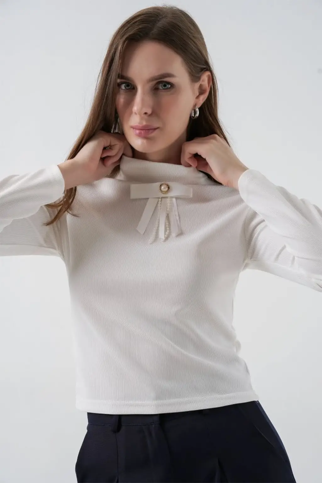 Kurdale Detay Uzun Kollu Bluz 977 - Beyaz
