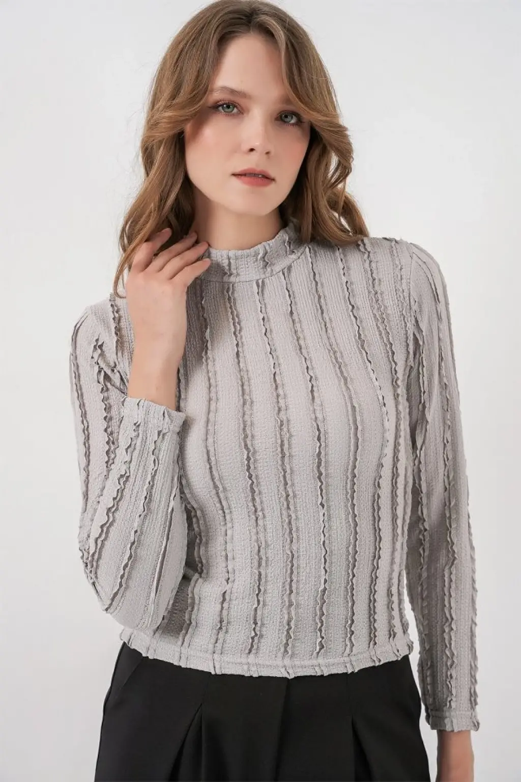 Kadın Uzun Kollu Fırfırlı Yakalı Triko Bluz