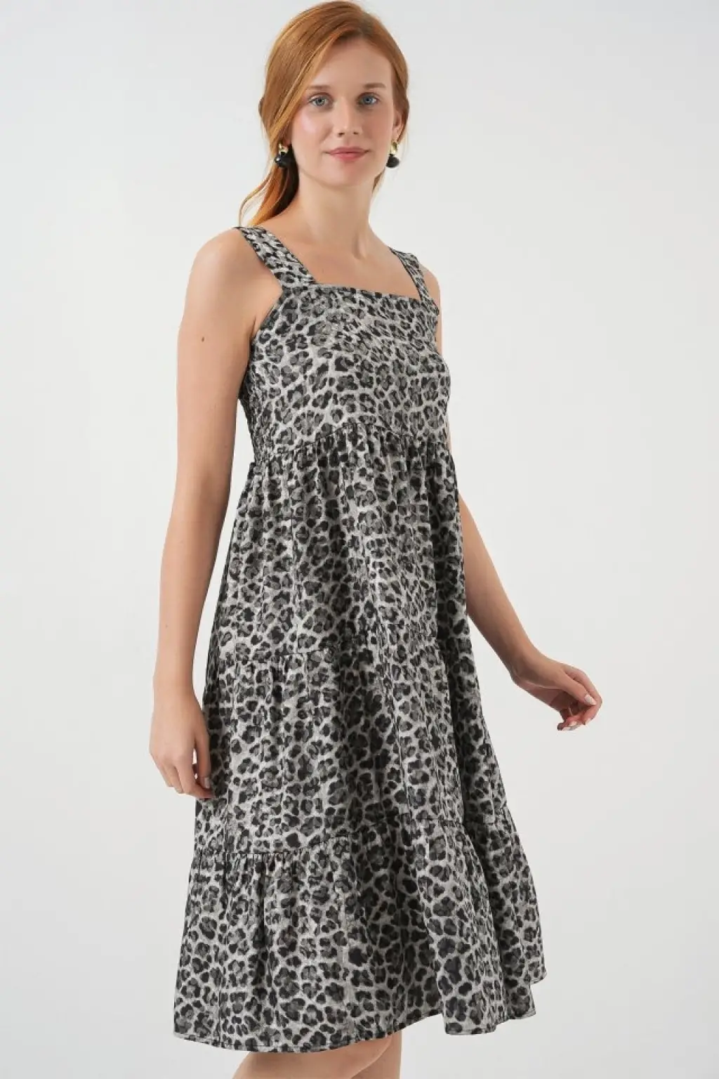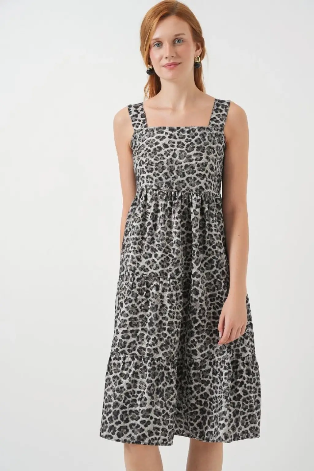 Desenli Askılı Midi Elbise 2577 - Antrasit