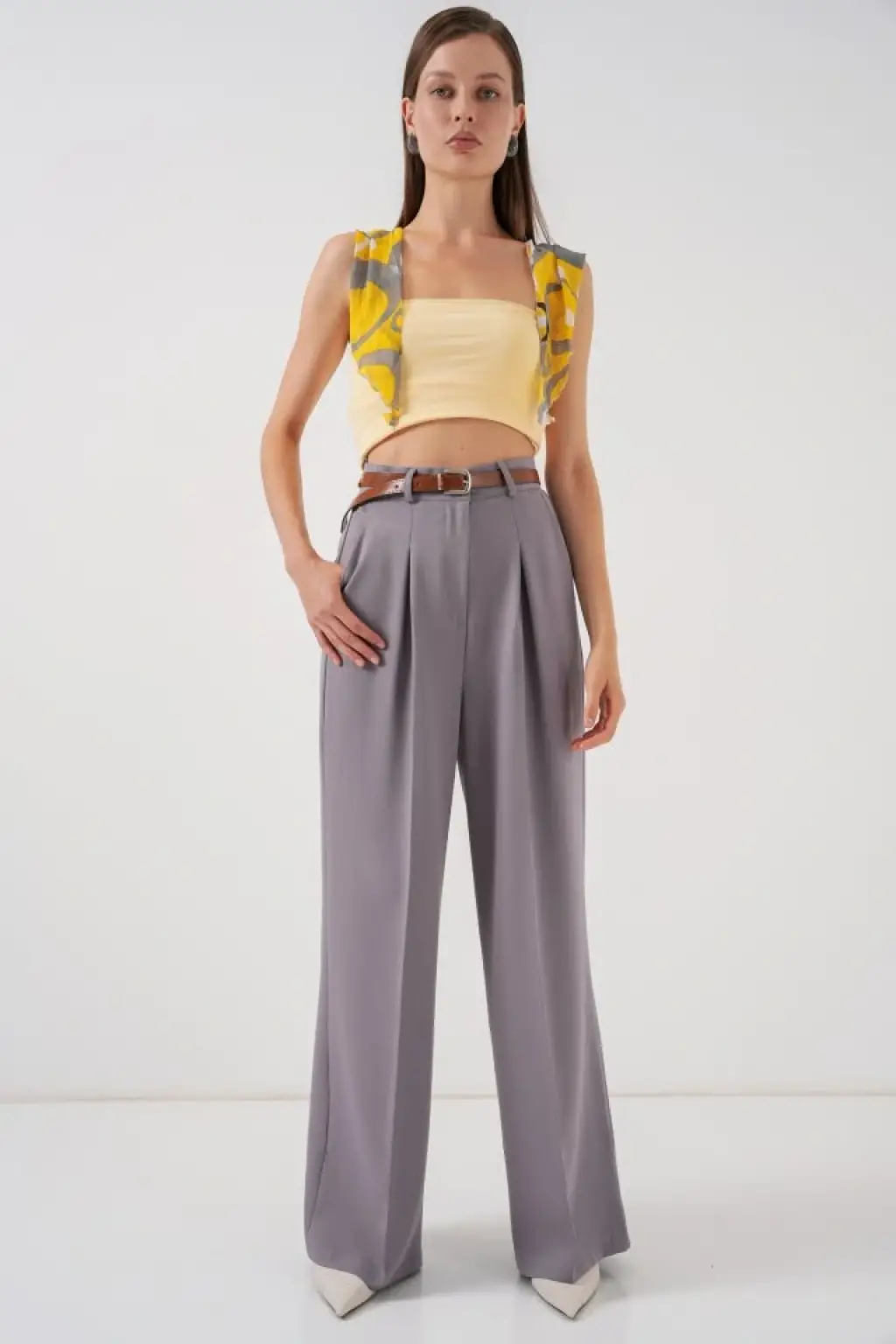 Yüksek Bel Palazzo Pantolon 30051 - Gri