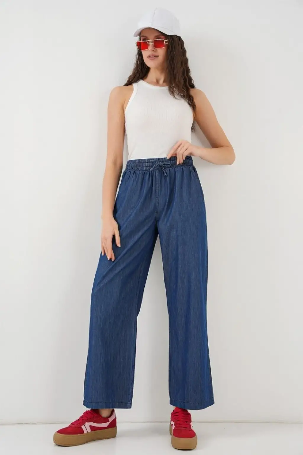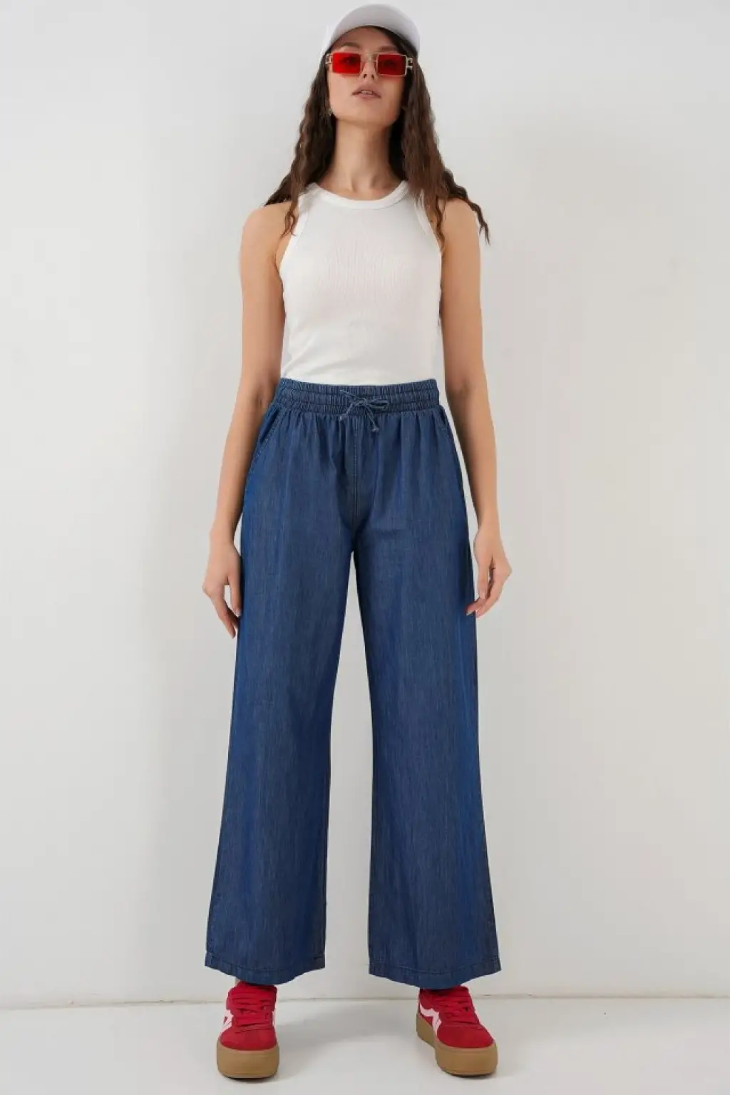 Beli Yarım Lastikli Palazzo Pantolon - Lacivert