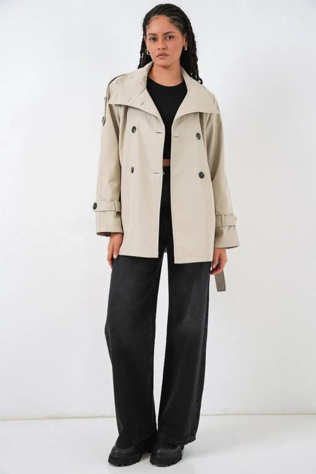 Kruvaze Yaka Kısa Trençkot 5980 - Bej