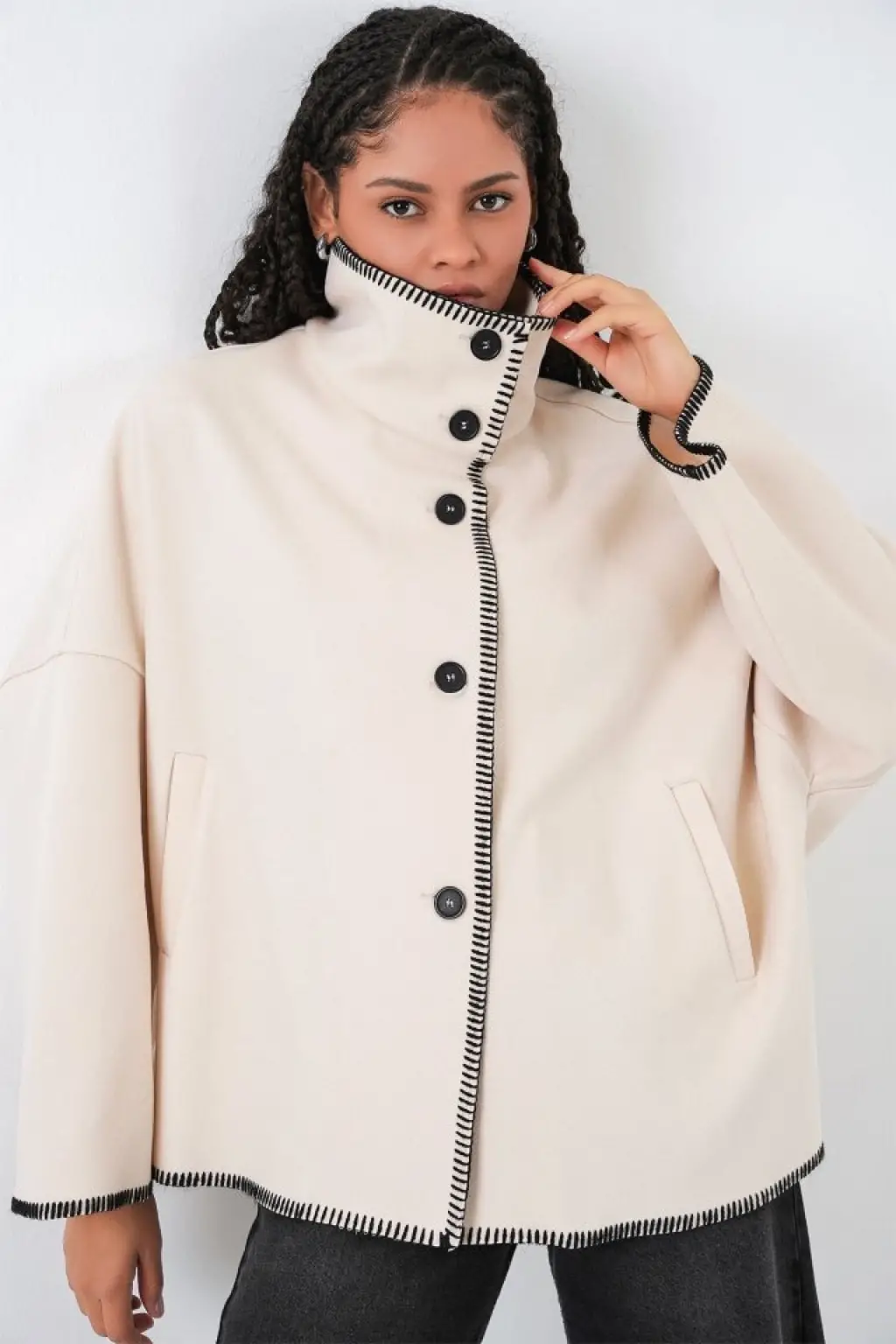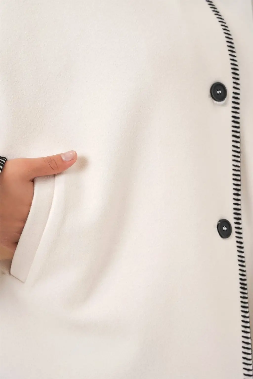 Nakışlı Kaşe Ceket 9167 - Ekru