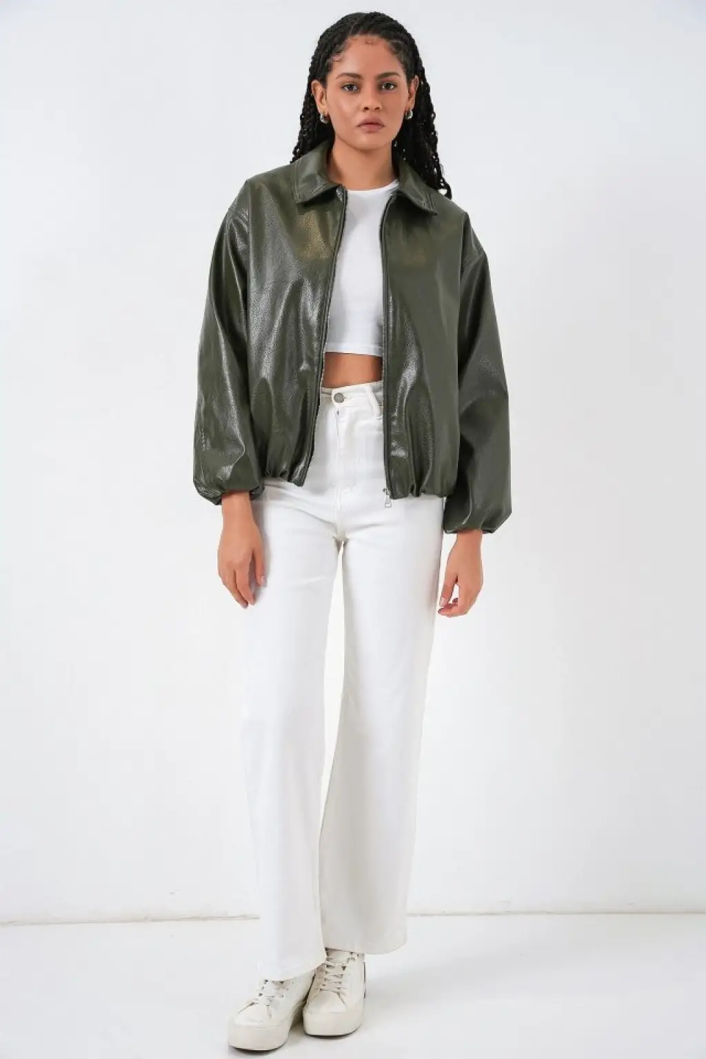 Çarpıcı Oversize Suni Deri Ceket