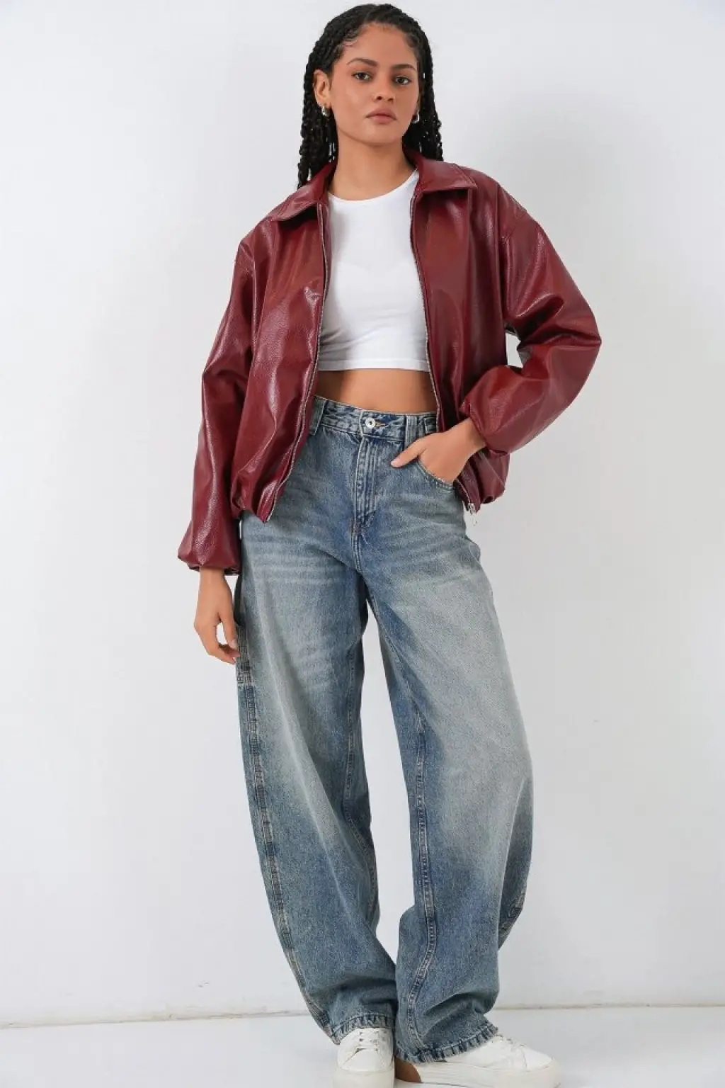 Oversize Suni Deri Ceket 1049 - Kiremit