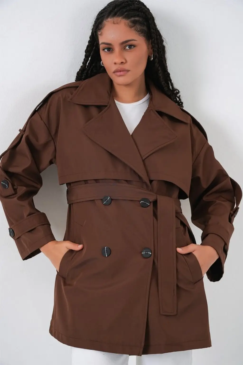 Trend Kısa Trençkot - Kahverengi