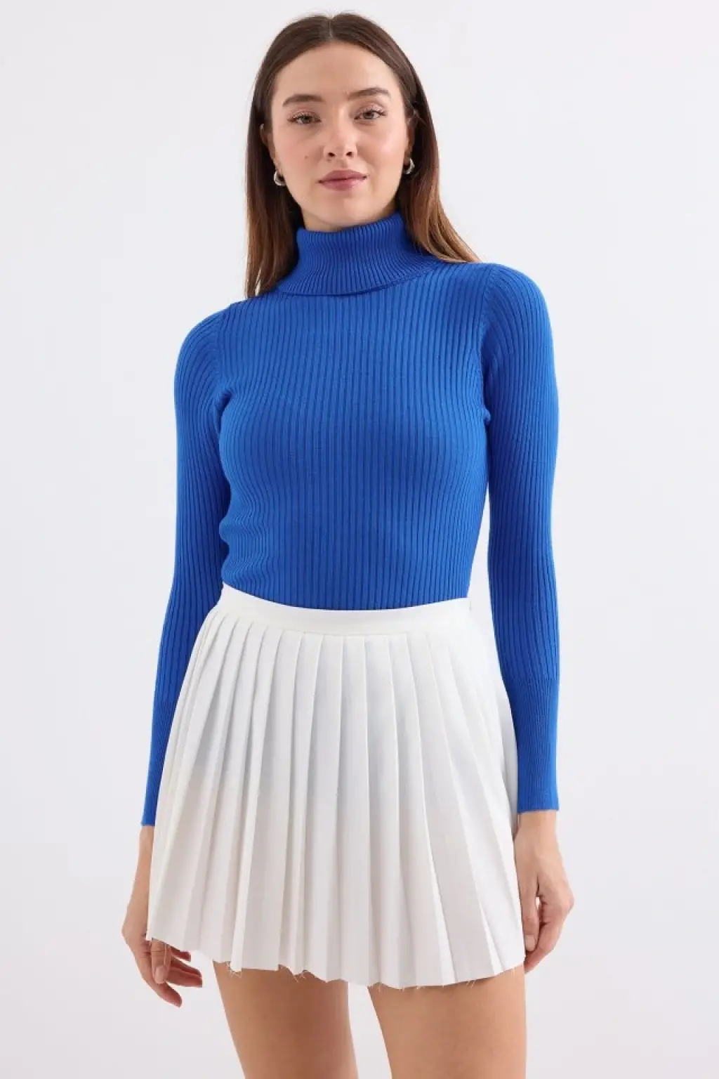 10311 Balıkçı Yaka Triko Kazak - Saks