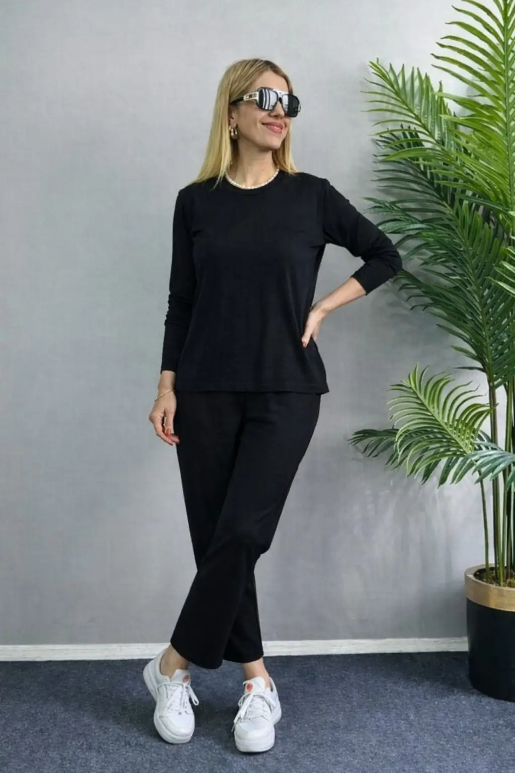 Kadın Uzun Kollu Kolu Tül Yanları şerit Detay Modal Ikili Takım