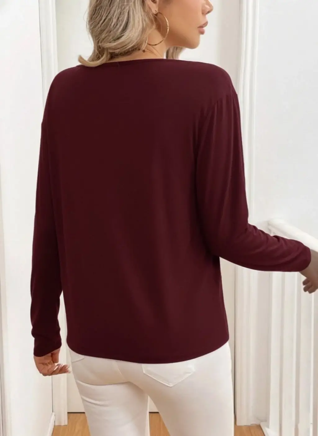 Kadın Uzun Kollu V Yakalı Viskon Iki Iplik Bluz