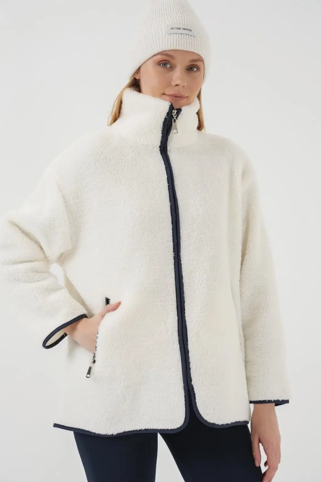55446 Fermuarlı Oversize Peluş Ceket Mont - Siyah