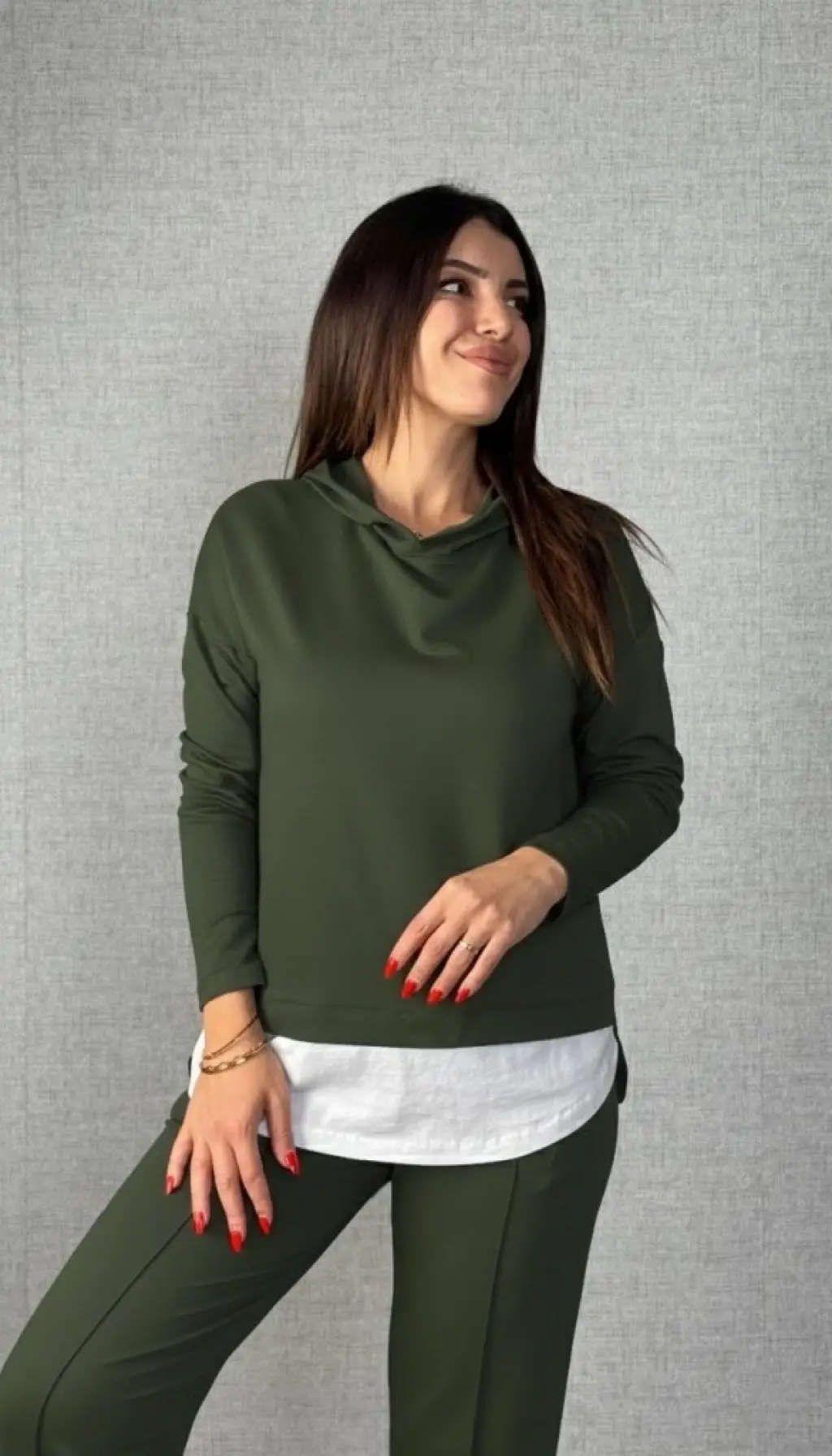 Kadın Uzun Kollu Kapşonlu Bağcıklı Viskon Iki Iplik Bluz Ve Pantolon Ikili Takım