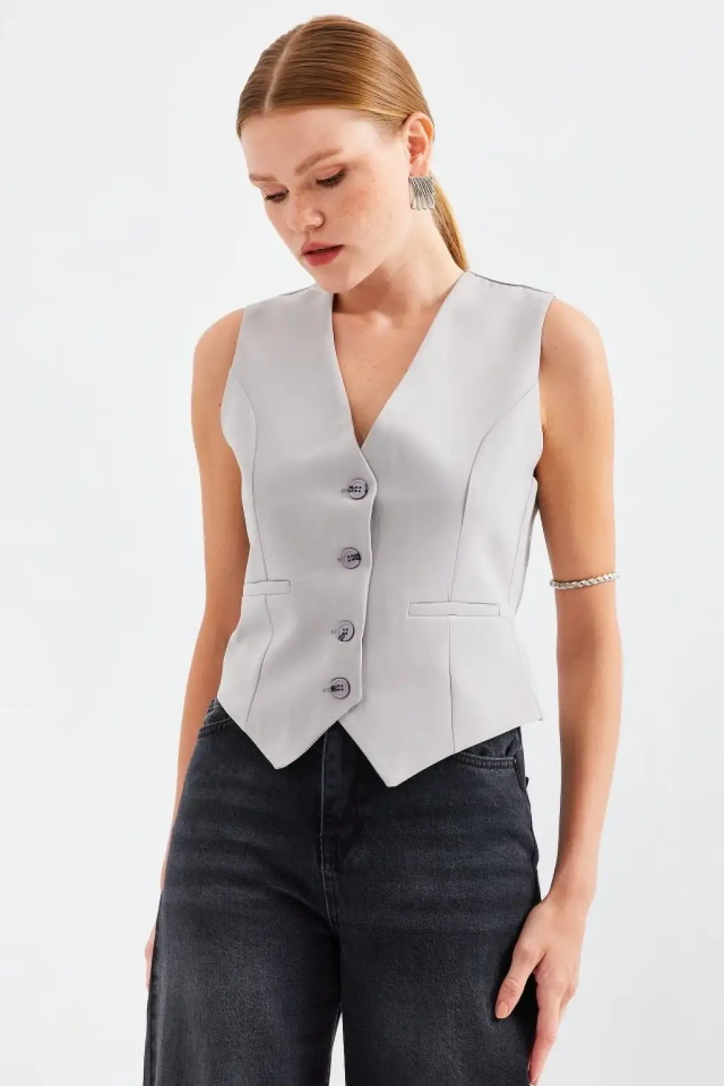 6796 Kısa Dokuma Yelek - Gri