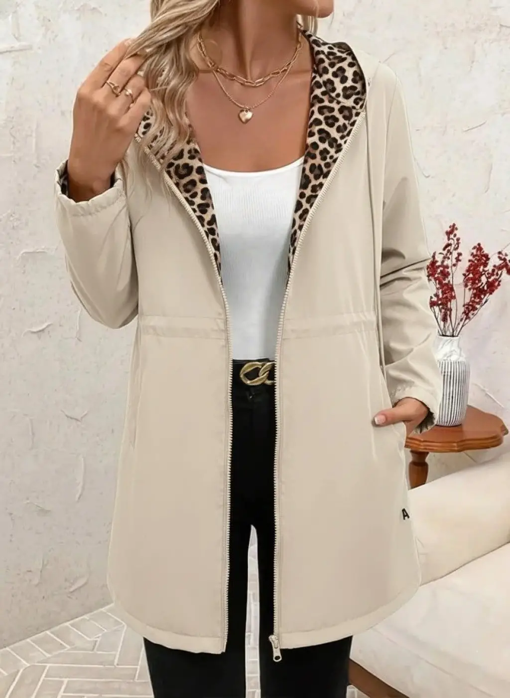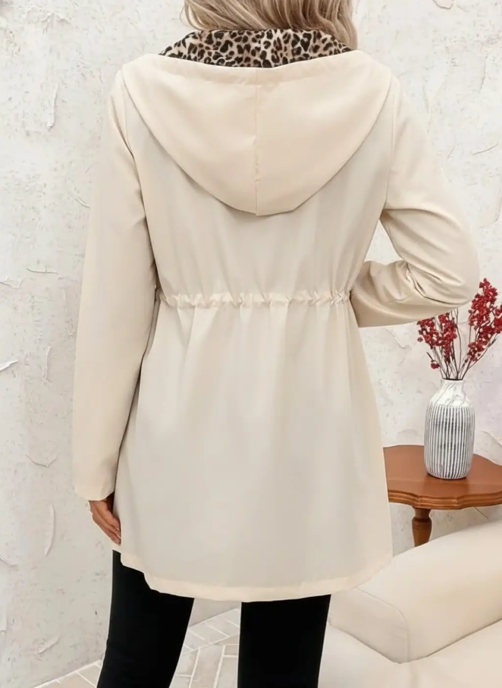 Kadın Uzun Kollu Kapşonlu çift Taraflı Cepli Bağcıklı Fermuarlı Viskon Iki Iplik Ceket