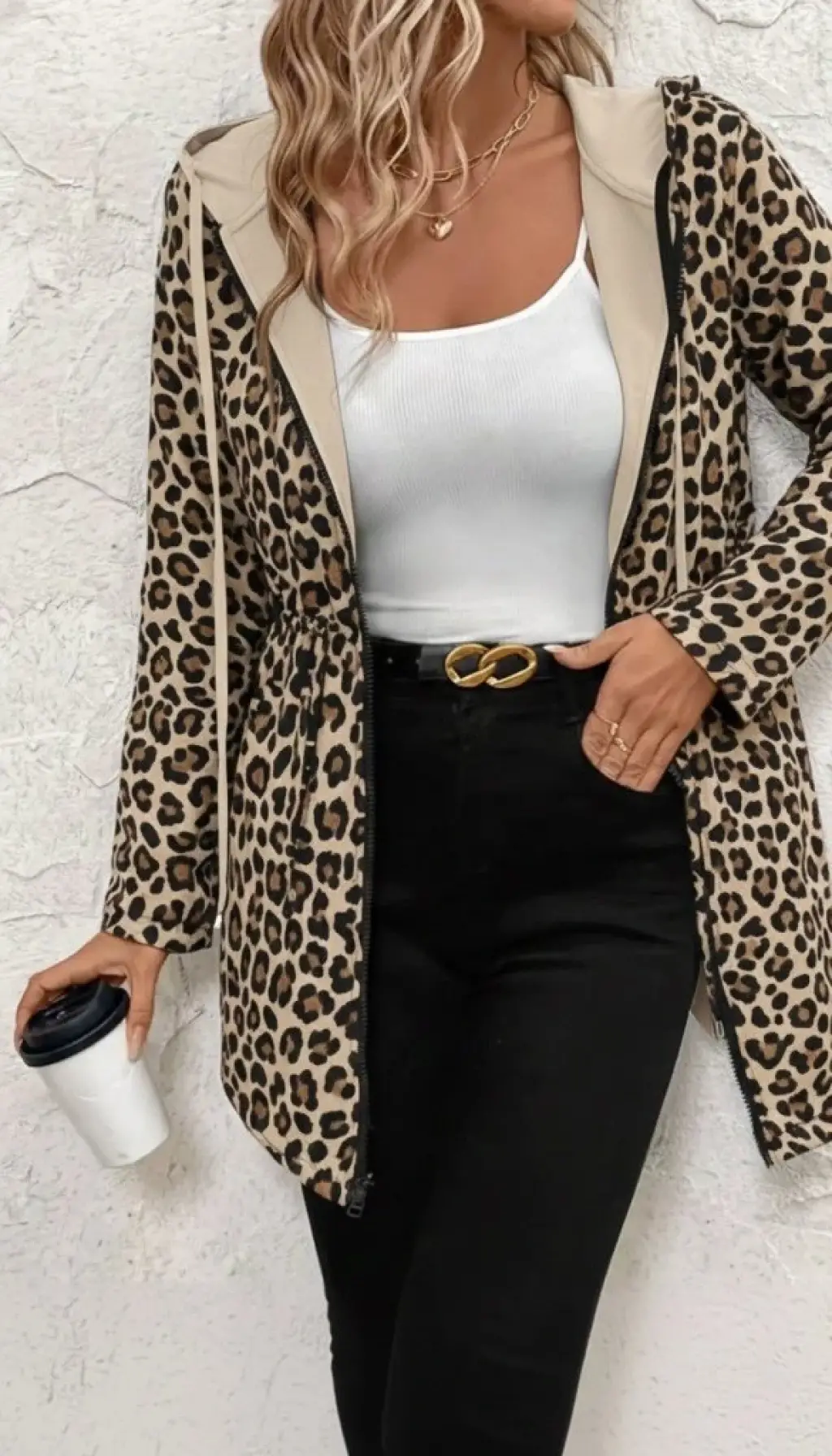 Kadın Uzun Kollu önü Açık Pulpayet Detaylı Leopar Desenli Kısa Ceket