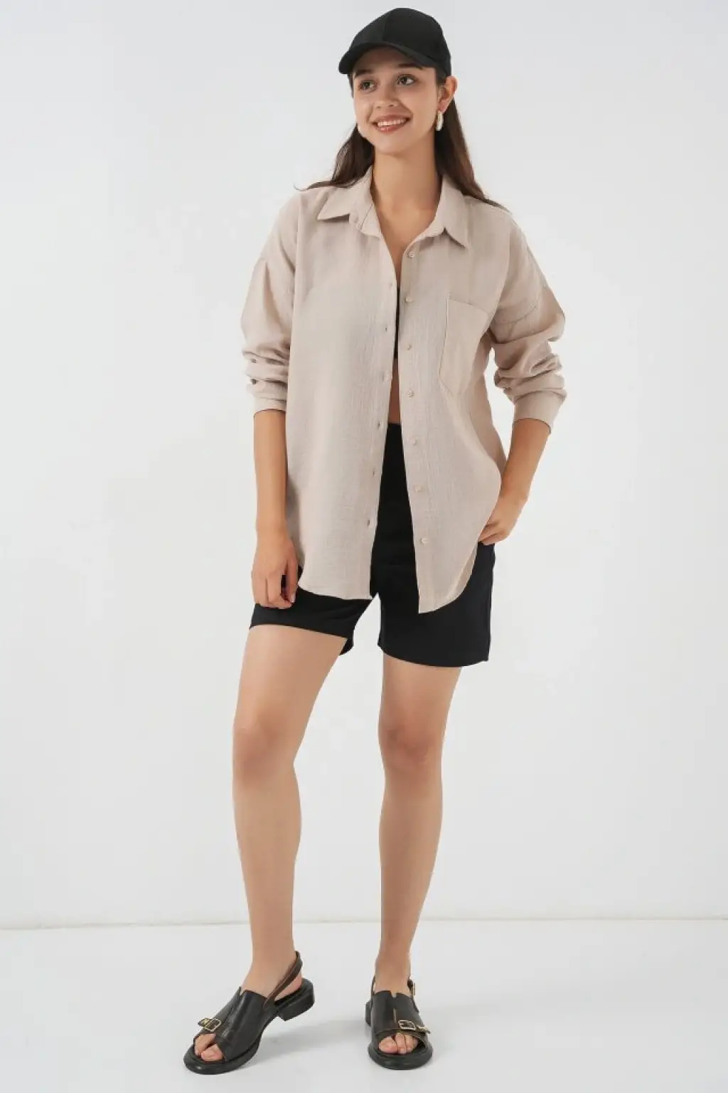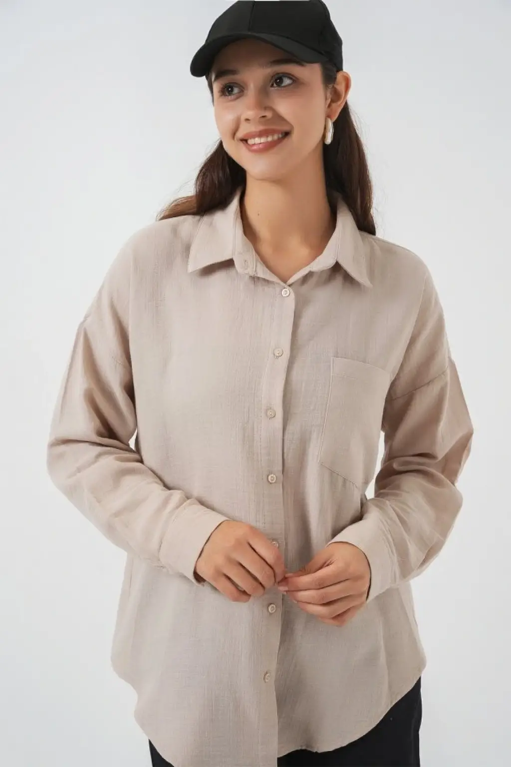 Tek Cepli Oversize Müslin Gömlek 20353 - Taş