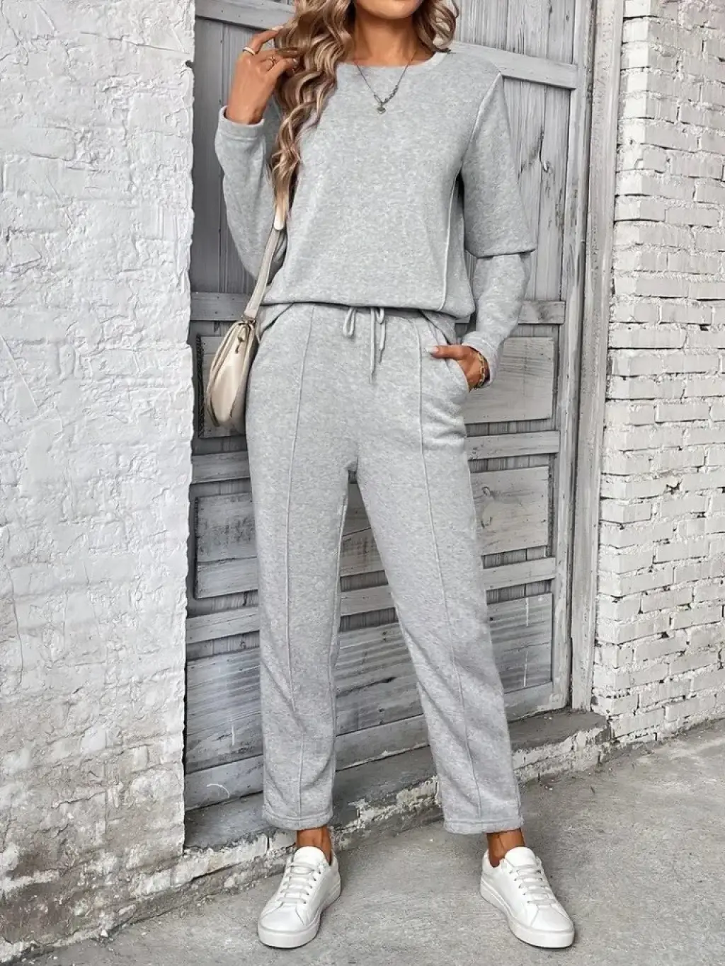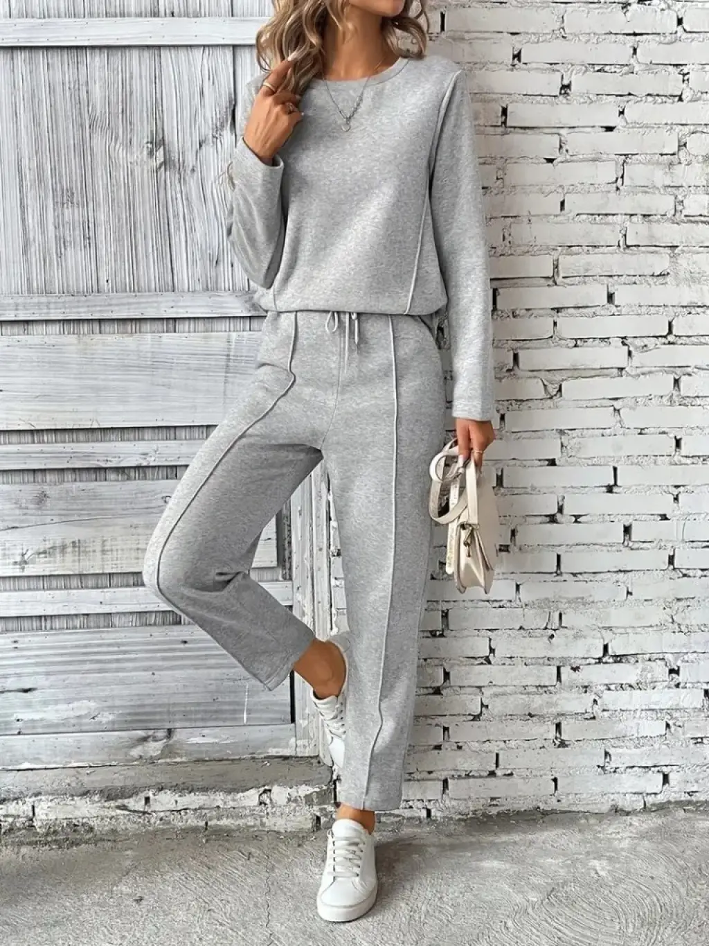 Kadın Uzun Kollu Yanları Nervurlu Viskon Iki Iplik Ve Pantolon Ikili Takım