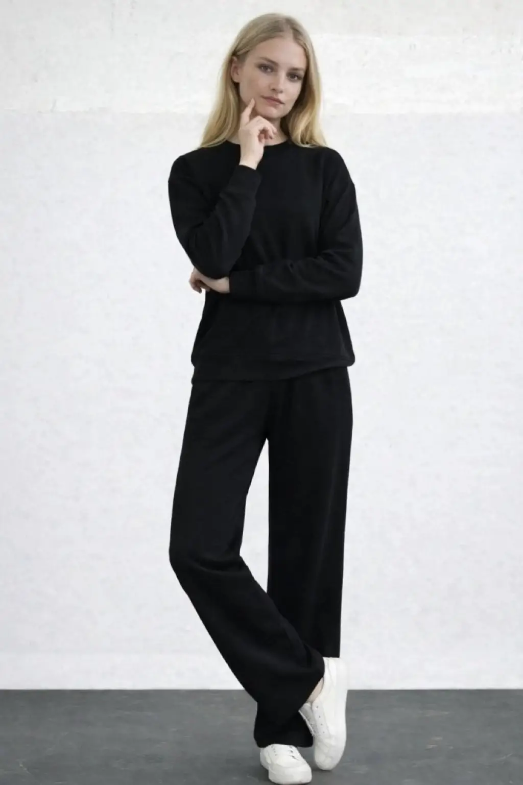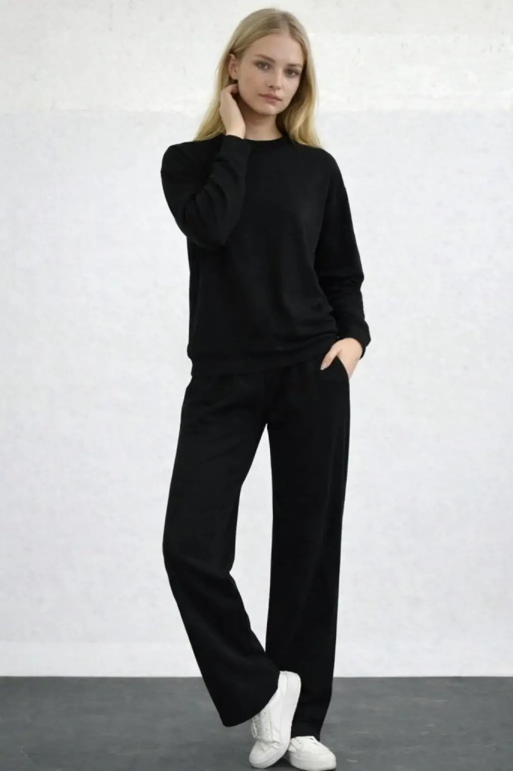 Kadın Uzun Kollu Bisiklet Yaka Viskon Iki Iplik Bluz Ve Pantolon Ikili Takım