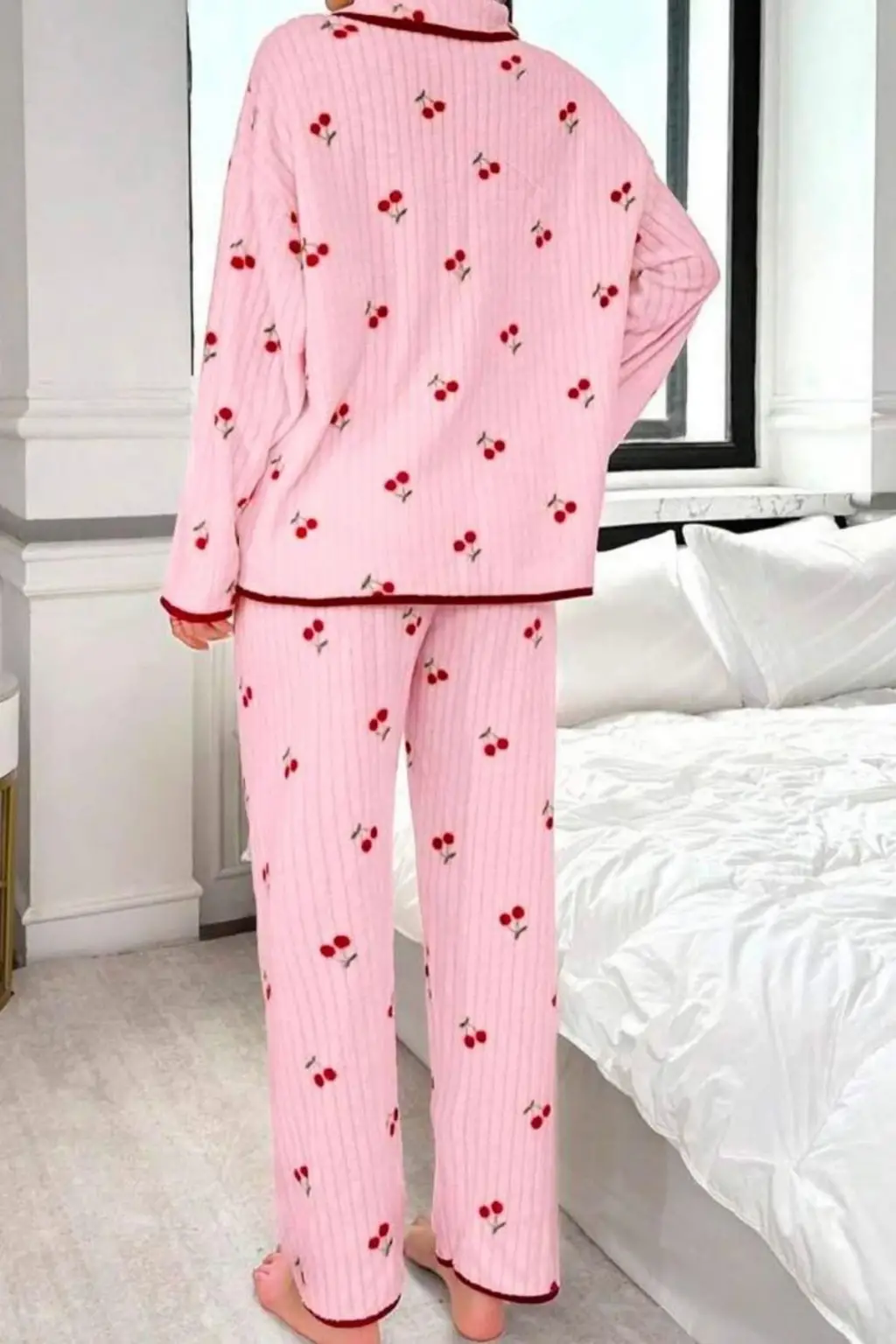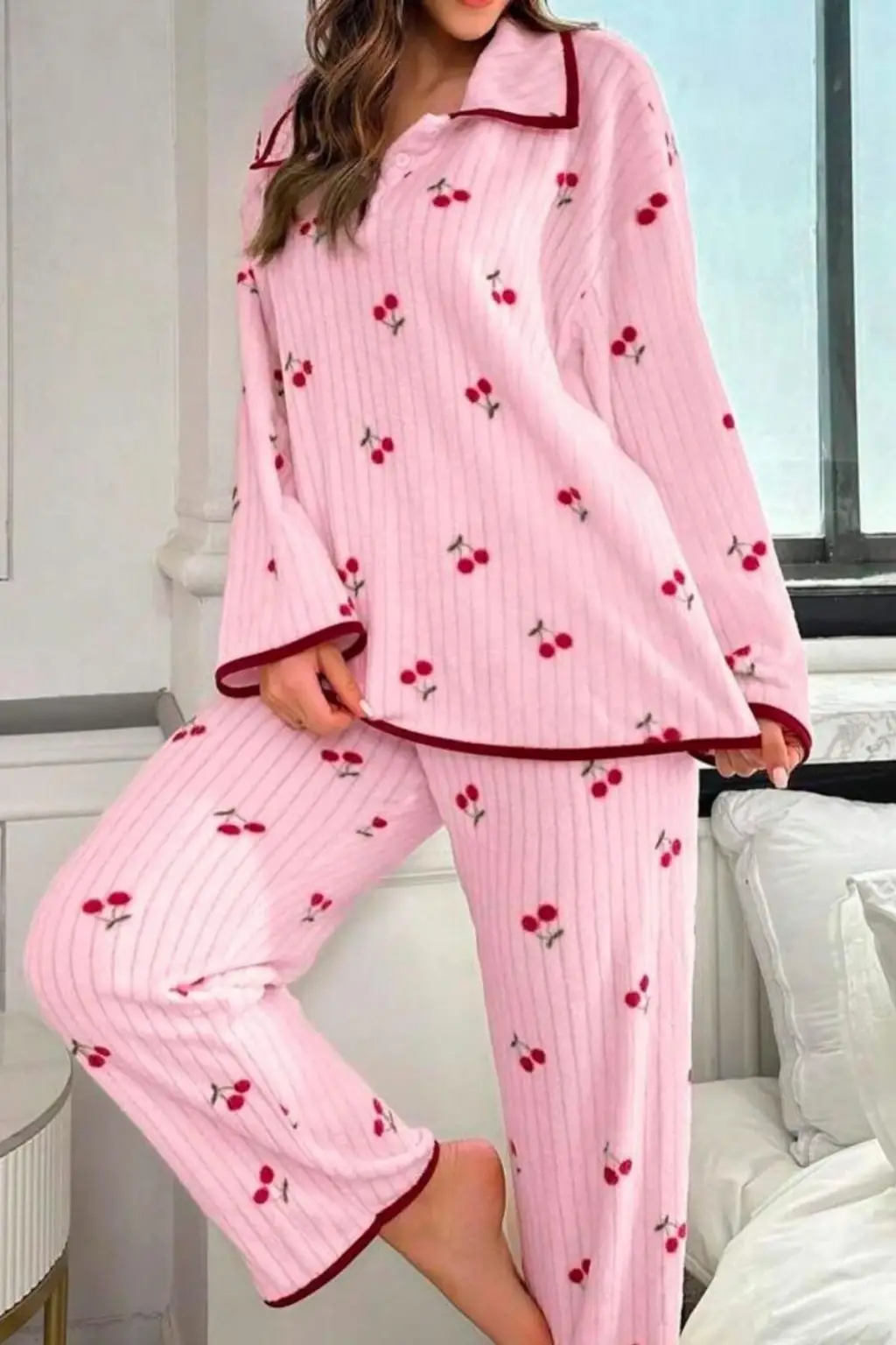 Pembe Kiraz Baskılı Cotton Pijama Takımı 77017