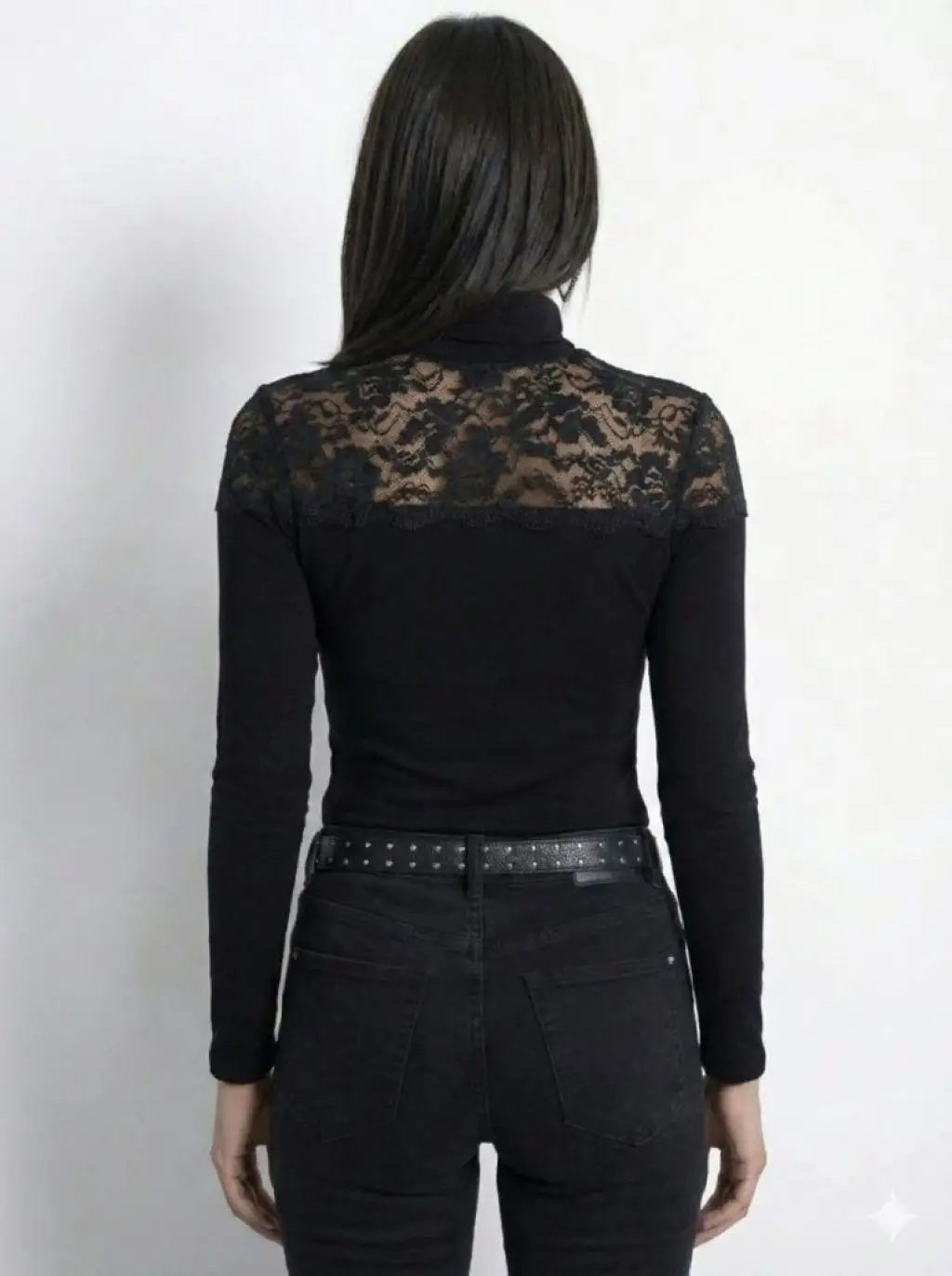 Kadın Uzun Kollu Balıkçı Yaka Dantelli Kaşkorse Bluz