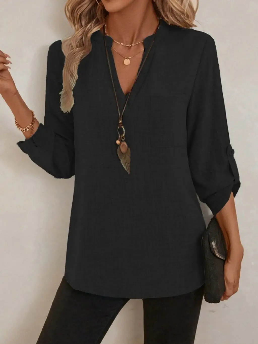 Kadın Truvakar Kol V Yakalı Keten Bluz