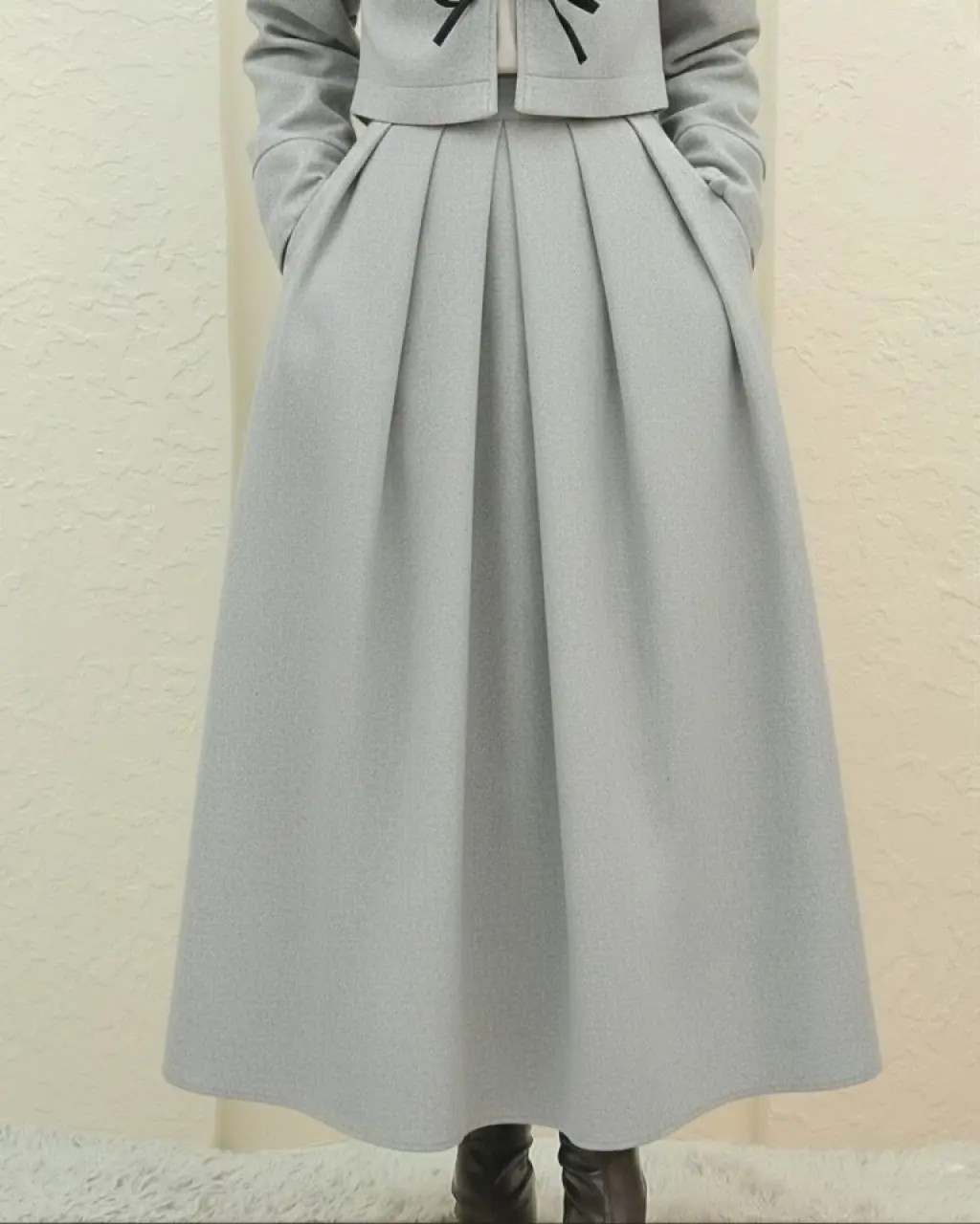 Pileli Fermuarlı Kaşe Etek -Açık Gri