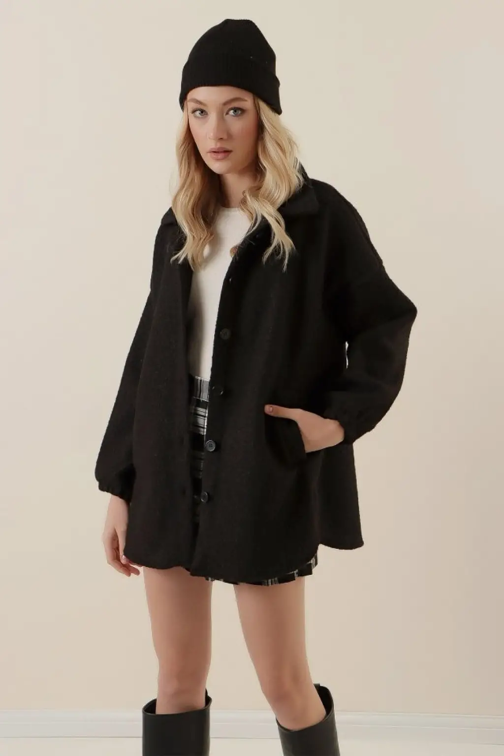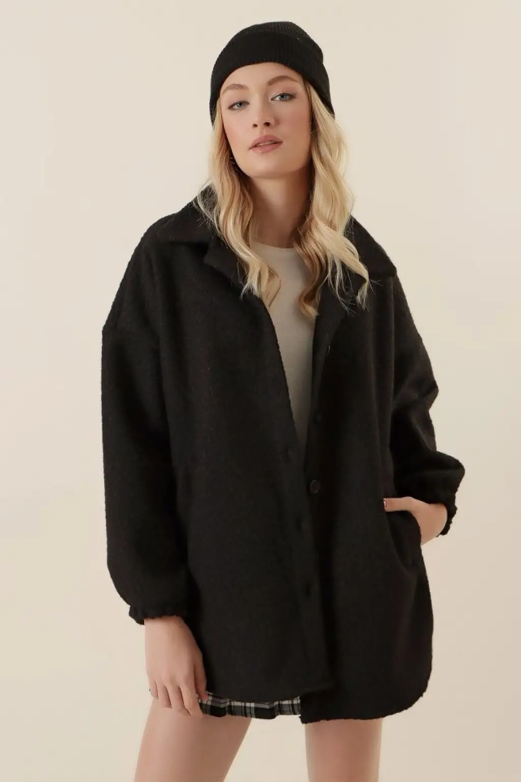 0675 Yün Karışımlı Buklet Ceket - Siyah