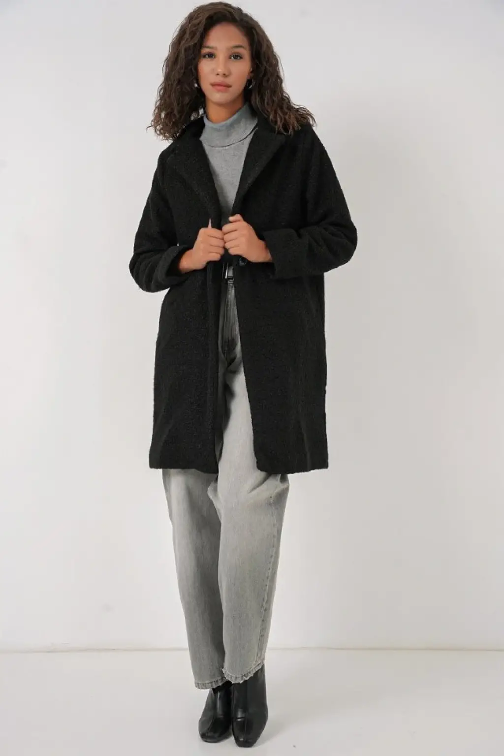 9082 Oversize Kaşe Kaban - Siyah