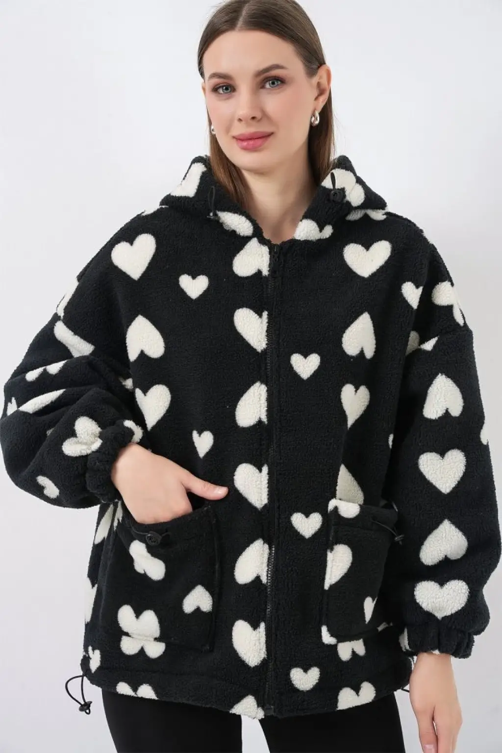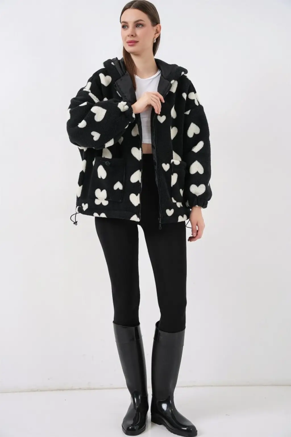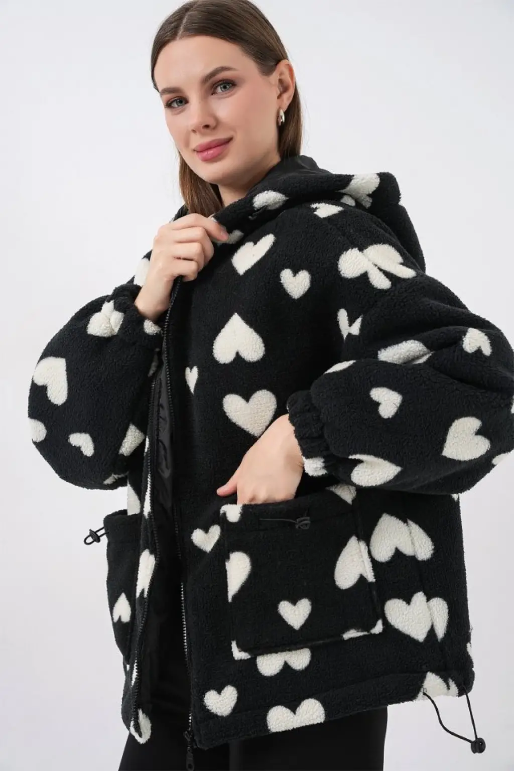 Kapüşonlu Peluş Ceket 5236 - Siyah