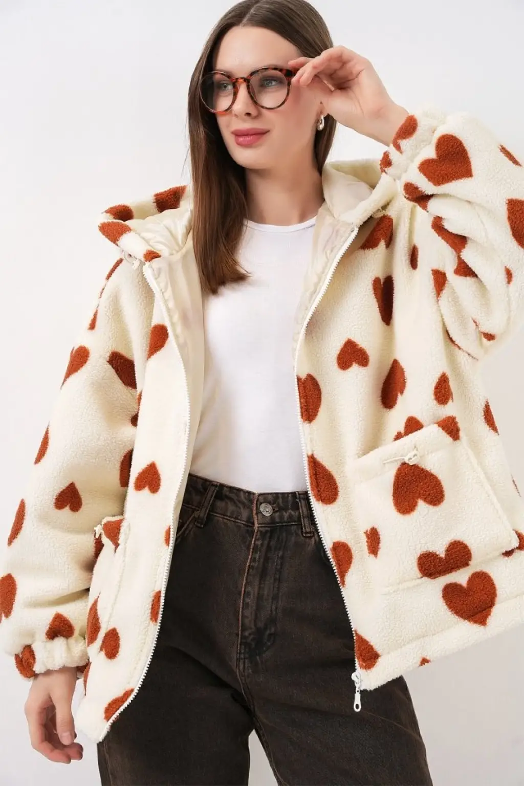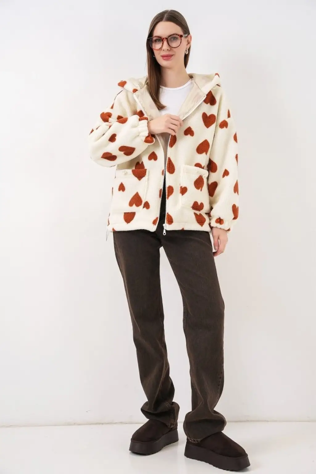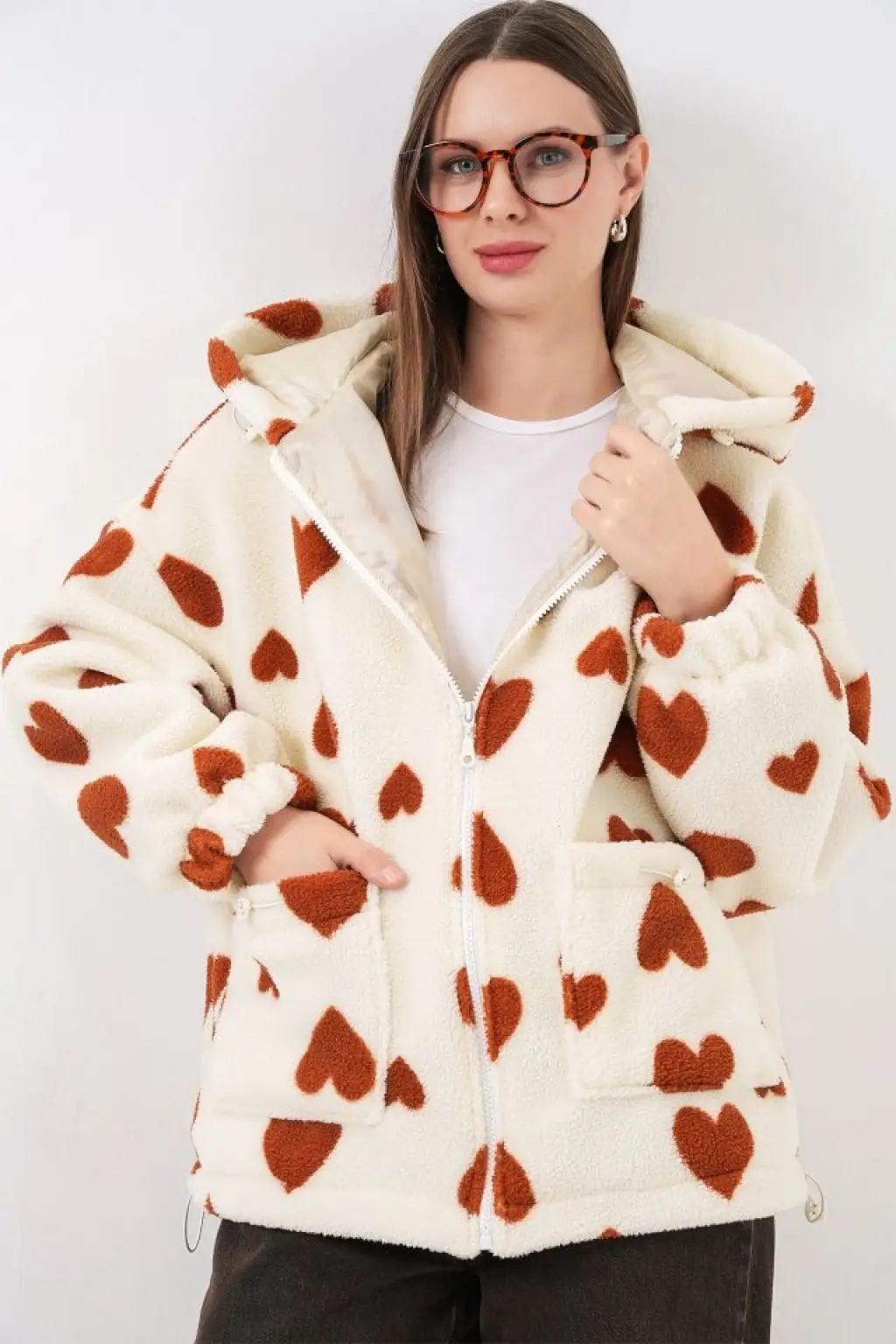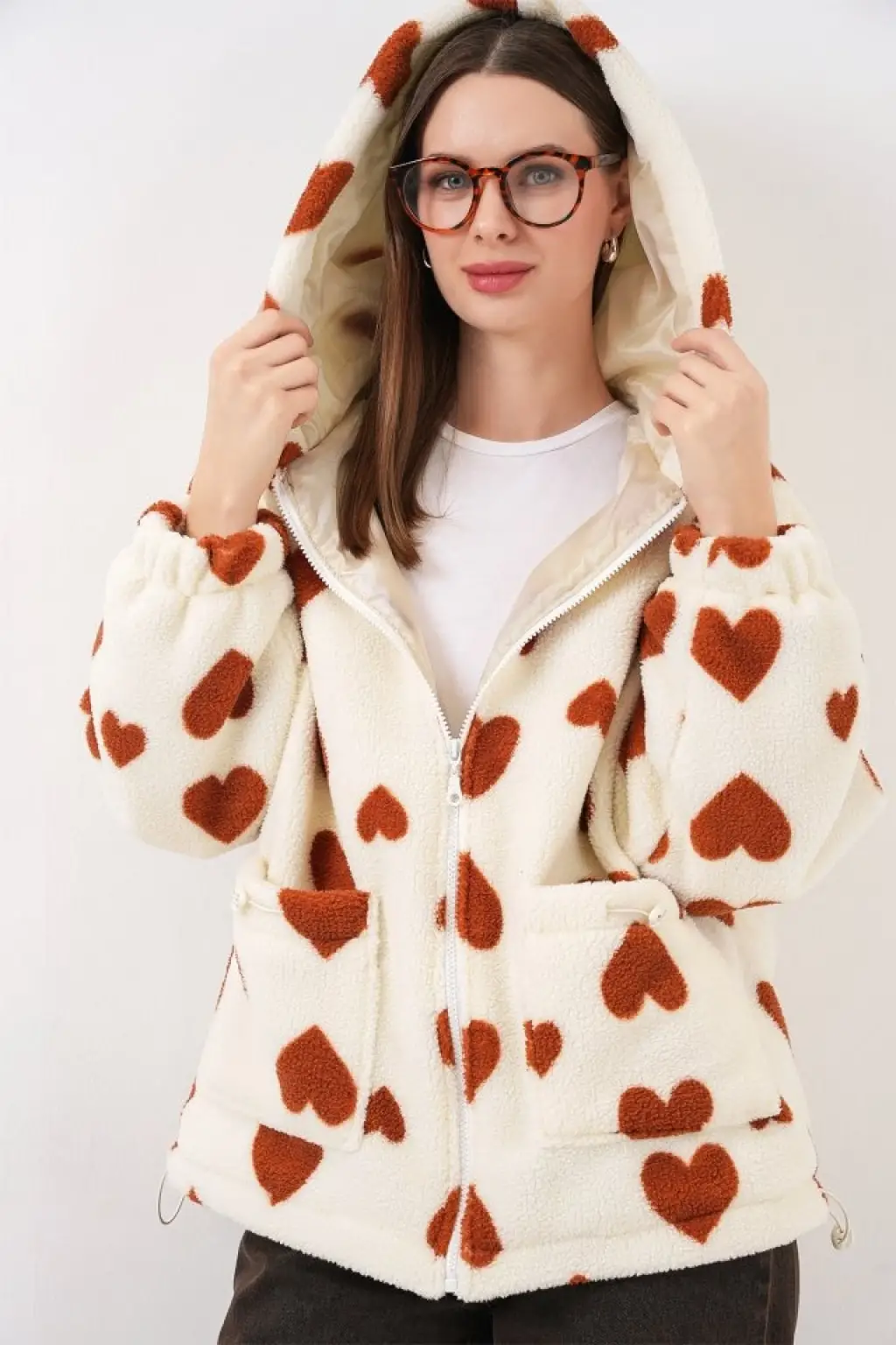 Kapüşonlu Peluş Ceket 5236 - Taba