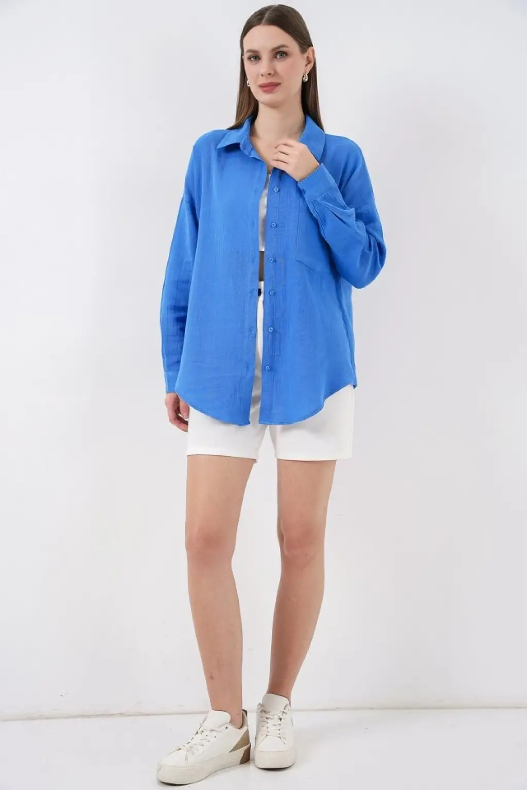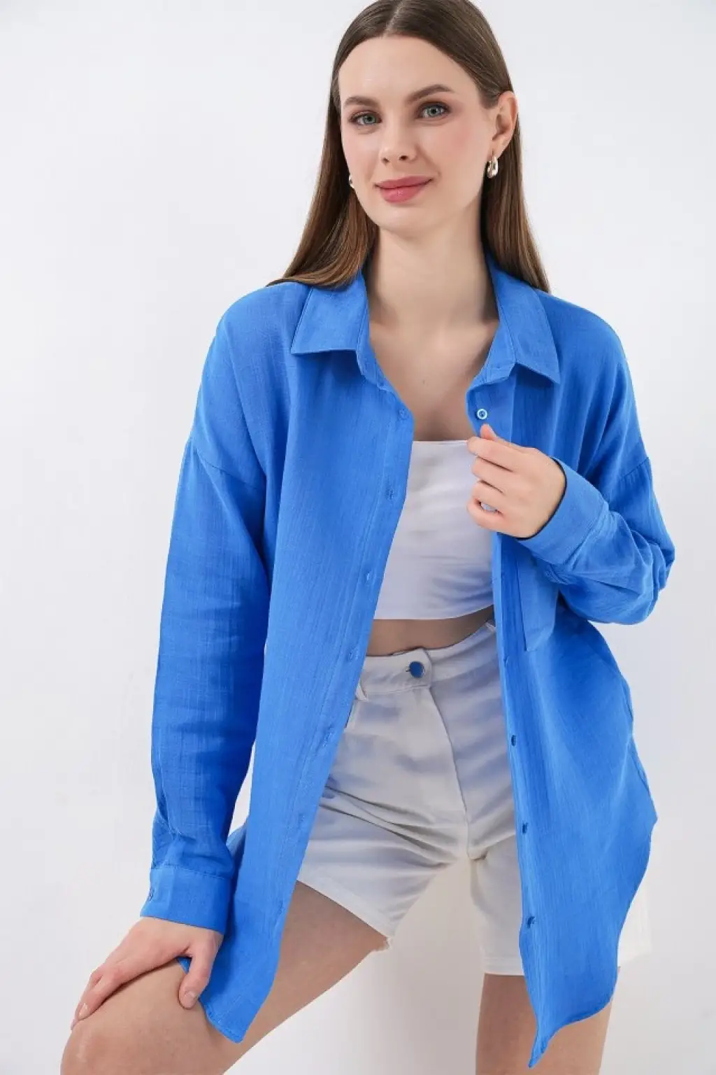Modern Oversize Müslin Gömlek - Mavi