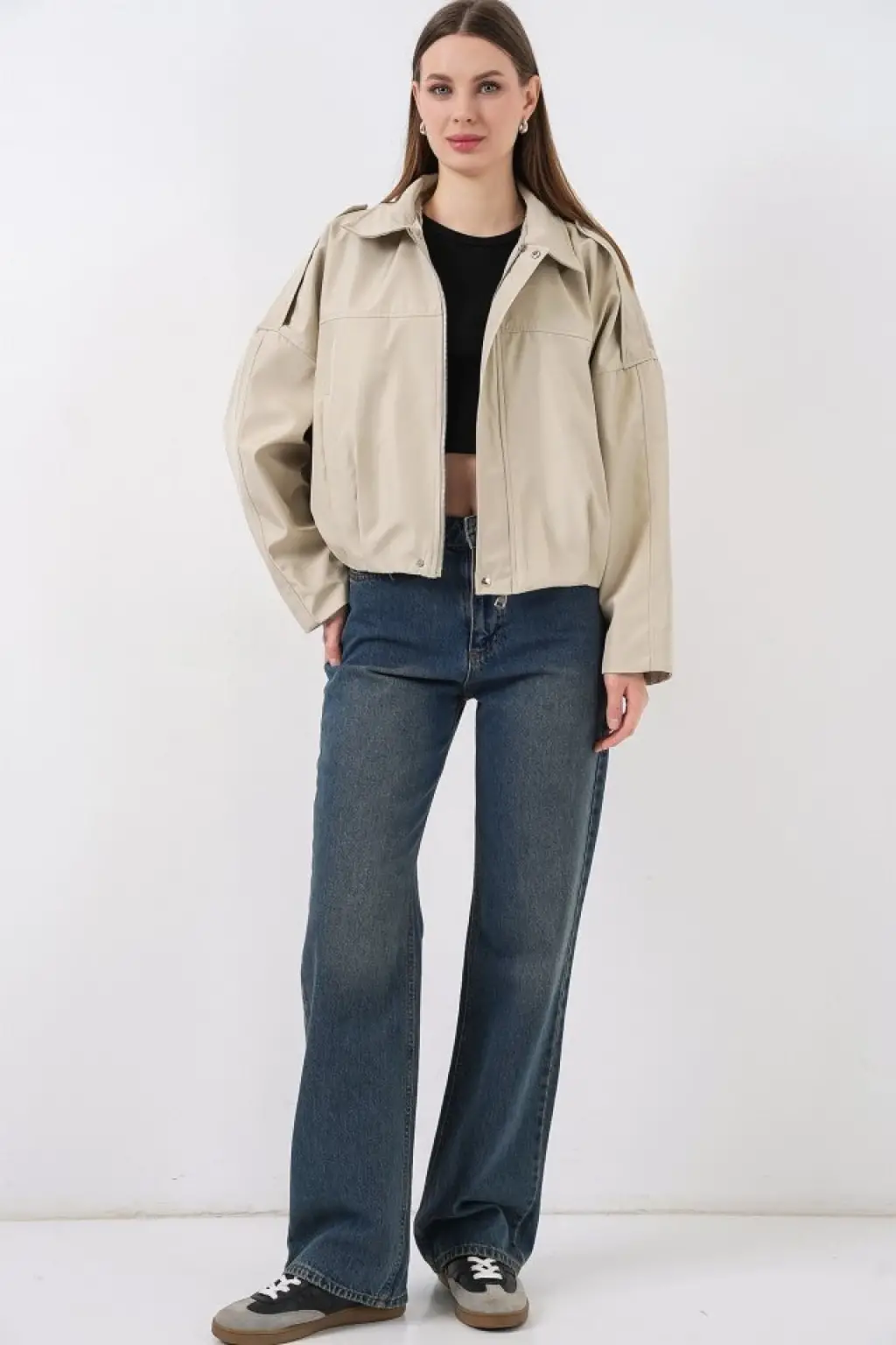 Oversize Kısa Ceket 0732 - Taş