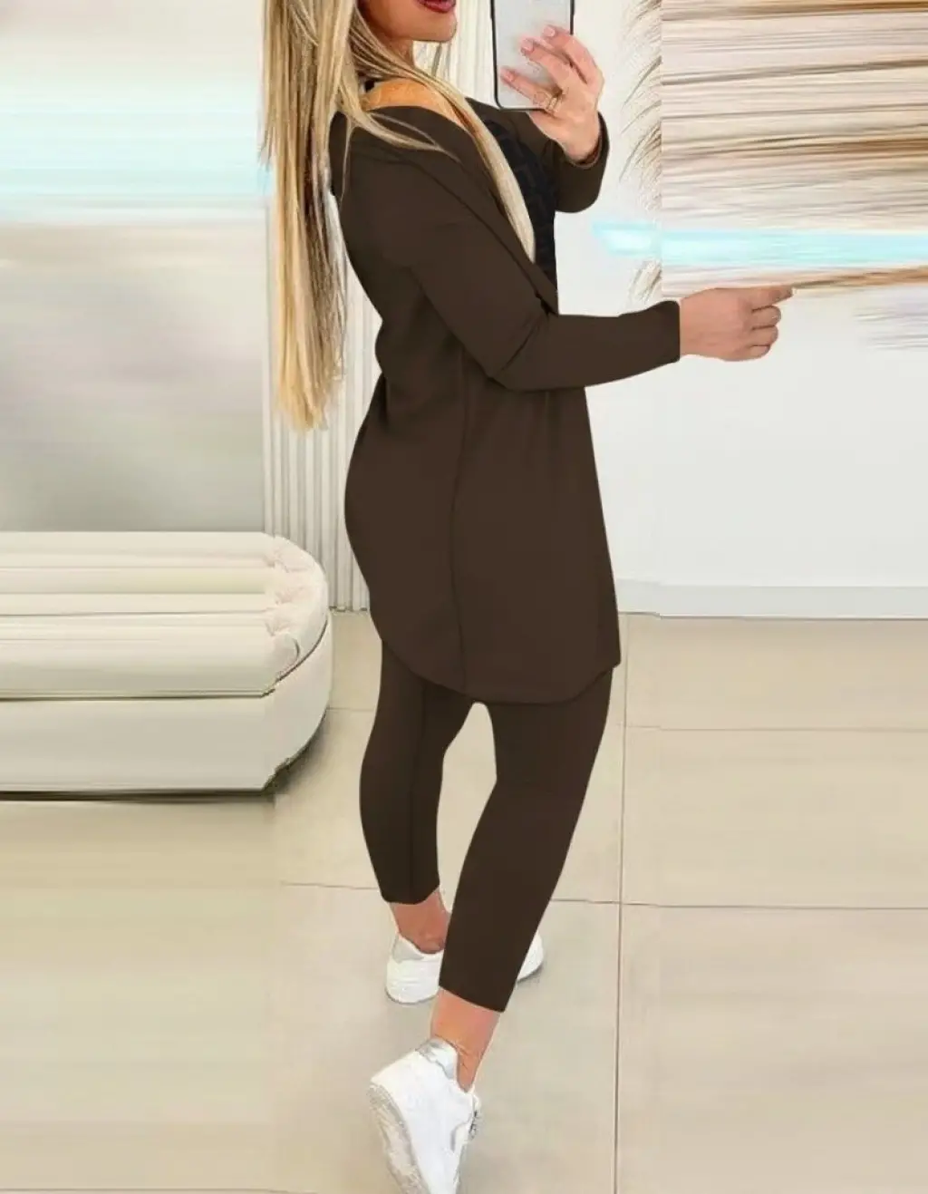 Bağcıklı Tunik Pantolon İkili Takım 6752 - Kahverengi