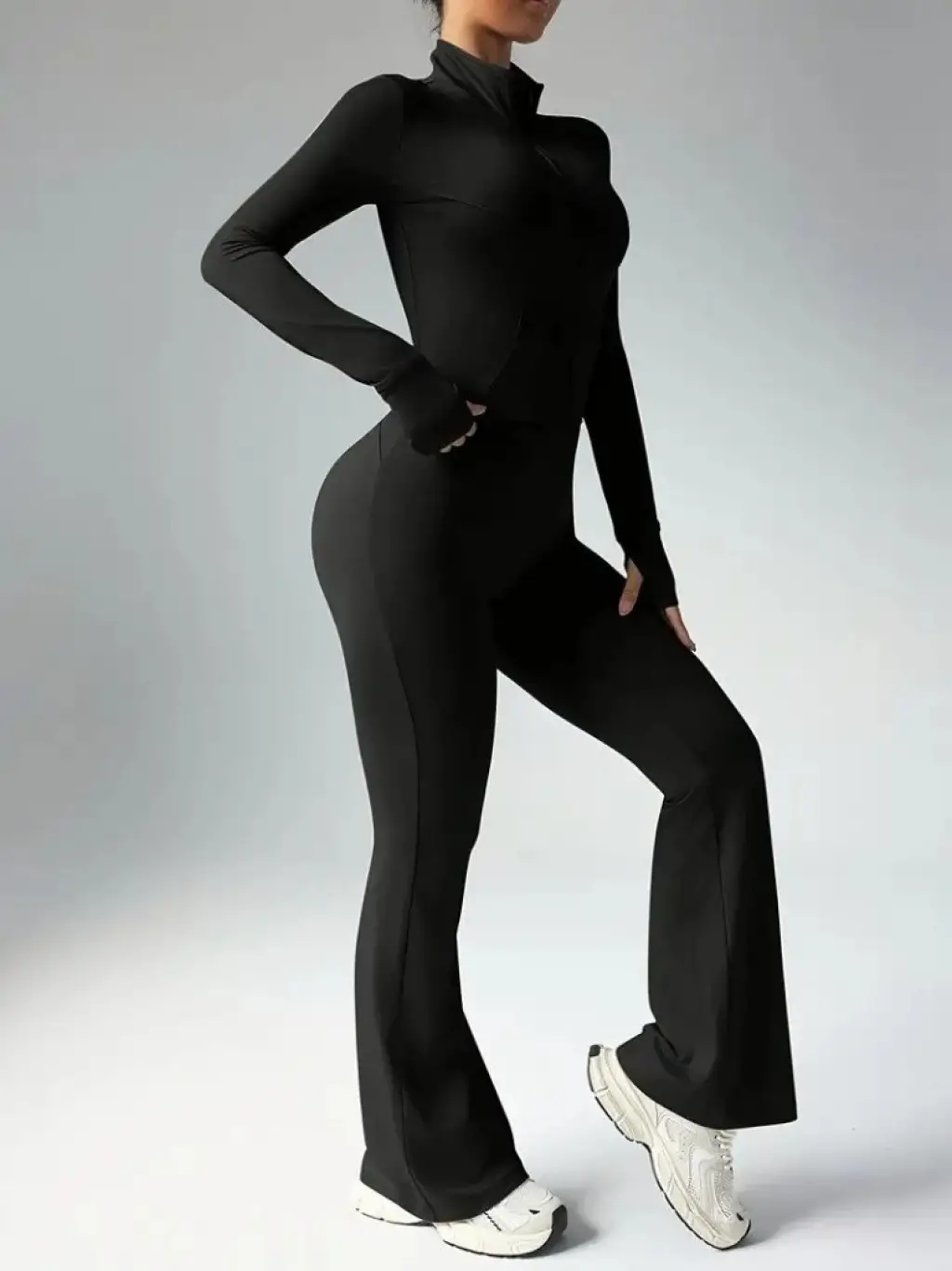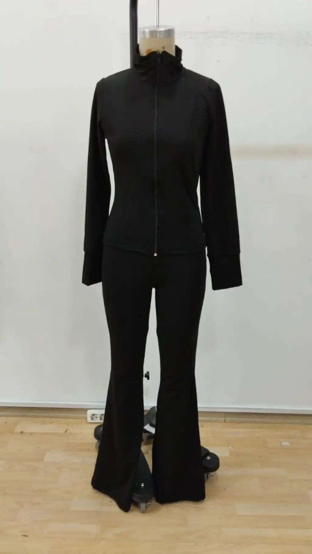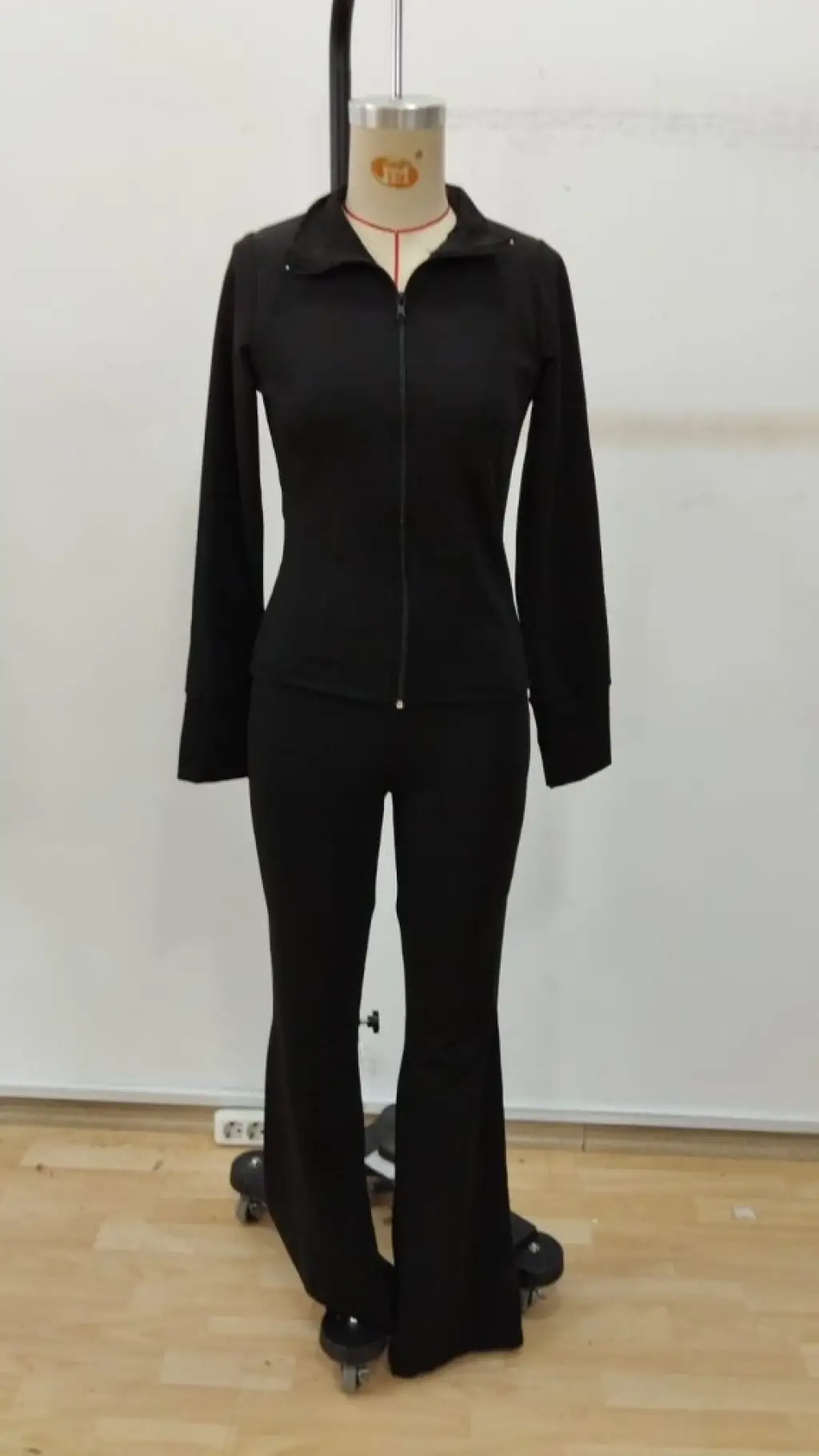 Kadın Uzun Kollu önden Fermuarlı Kısa Dalgıç Bluz Ve Pantolon Ikili Takım