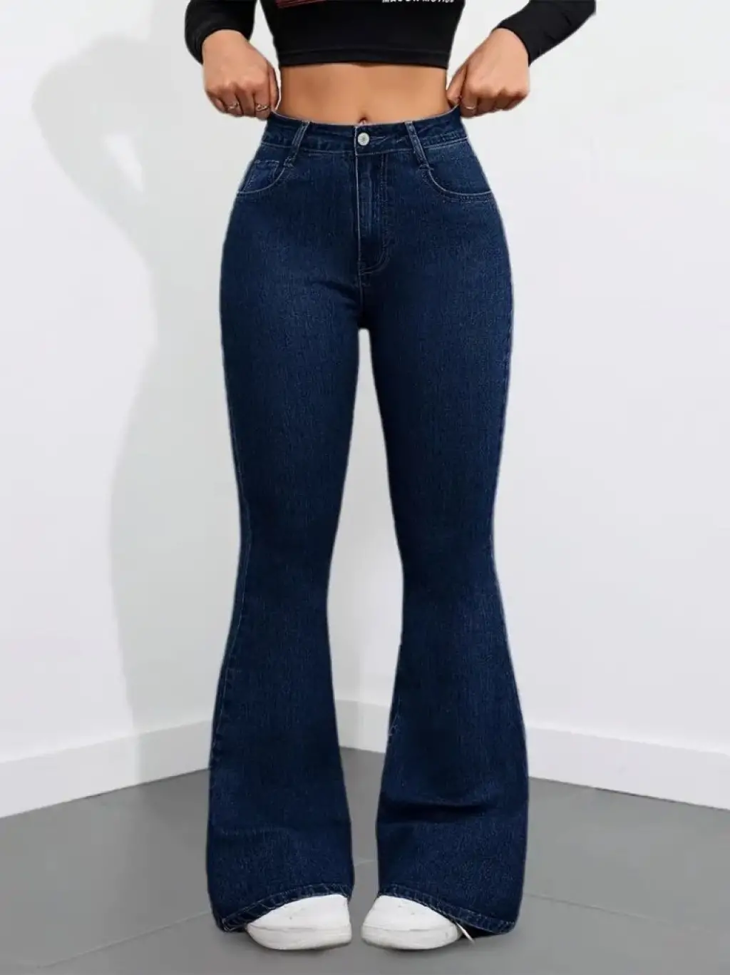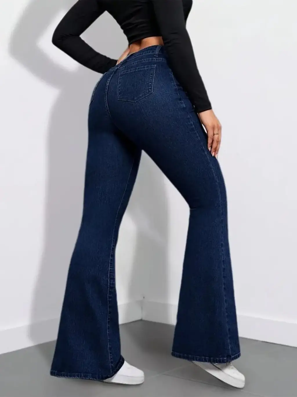 Modern Yüksek Bel Cepli İspanyol Paçalı Kot Pantolon