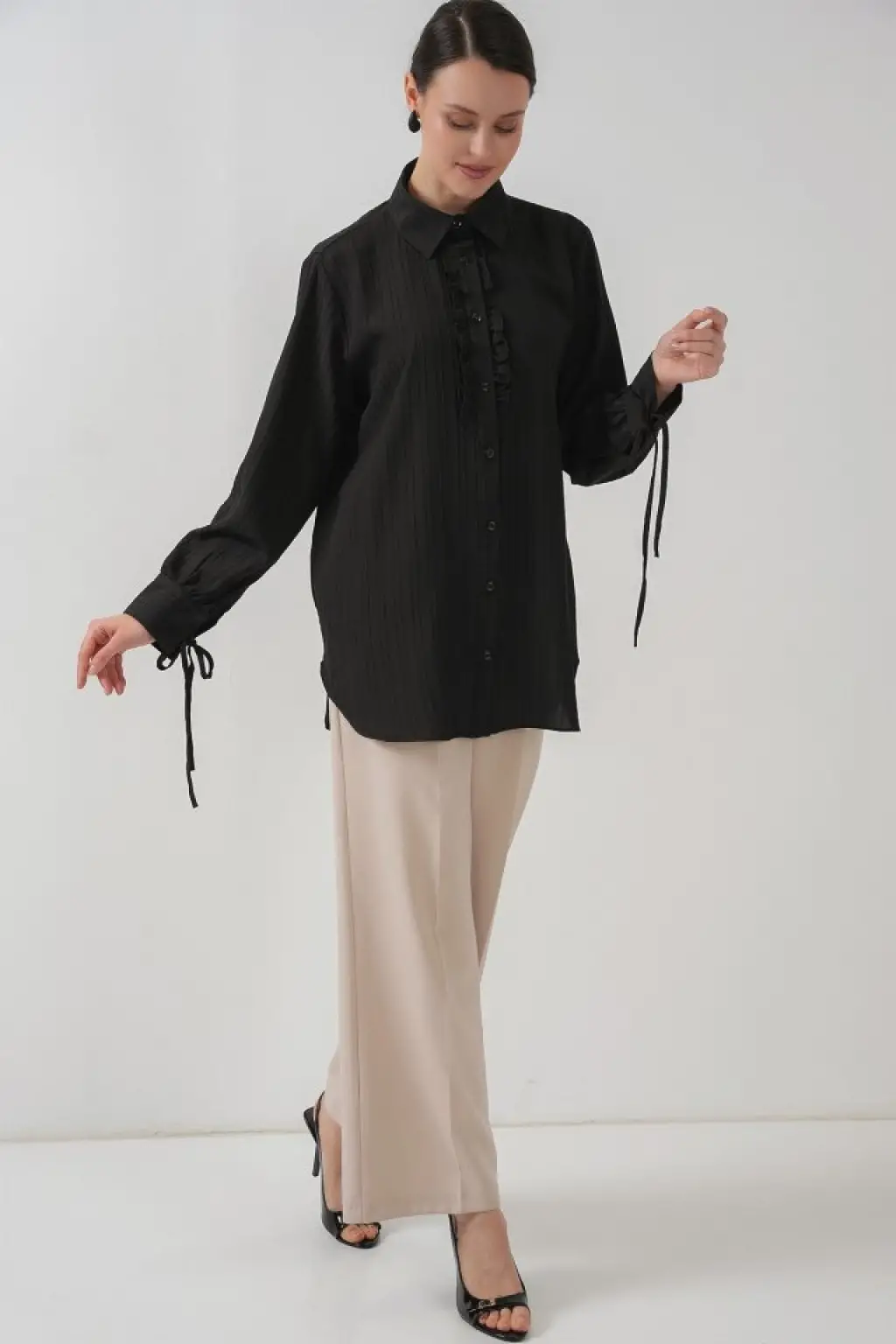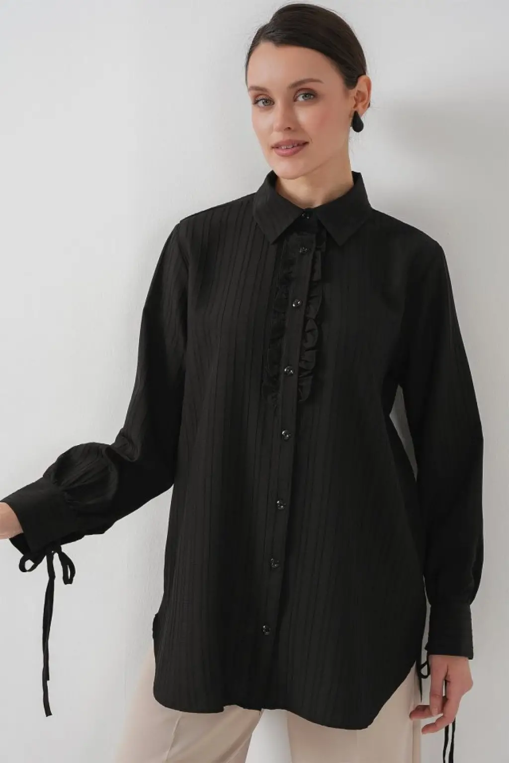 Fırfırlı Uzun Gömlek Tunik 5953 - Siyah