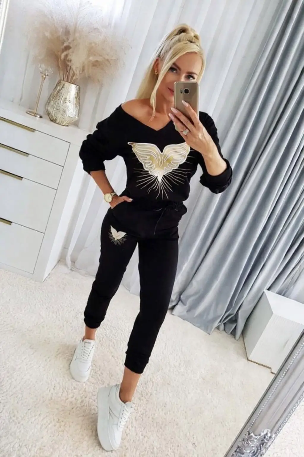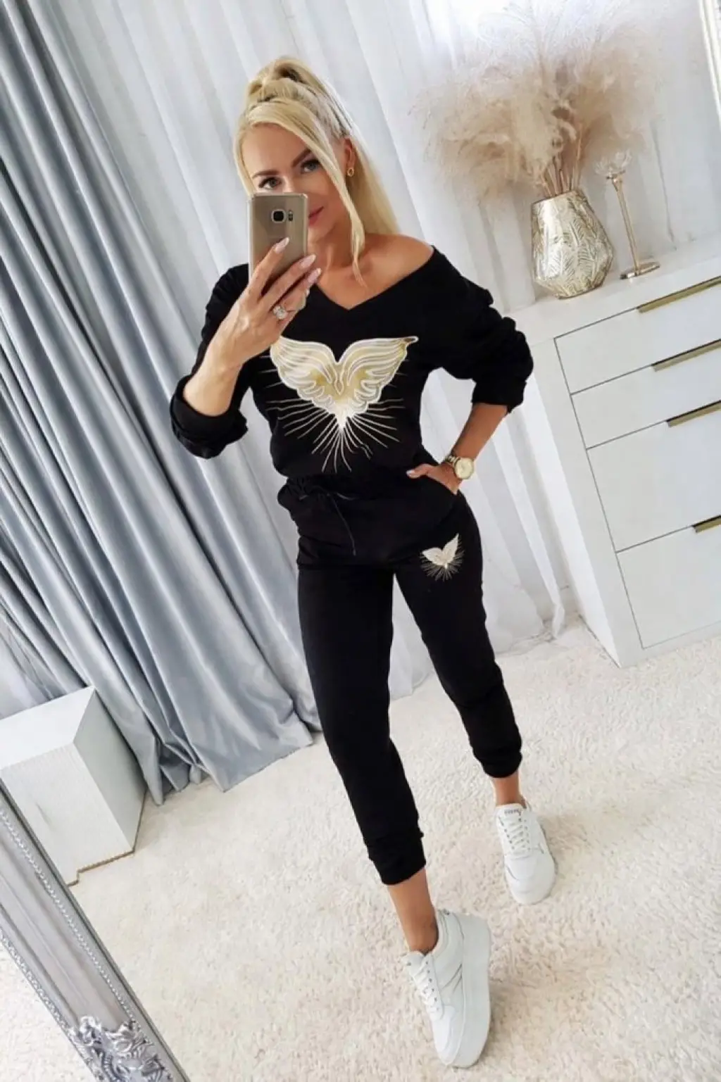 Kadın Uzun Kollu Nope Baskılı Beli Ribanalı Ikili Takım