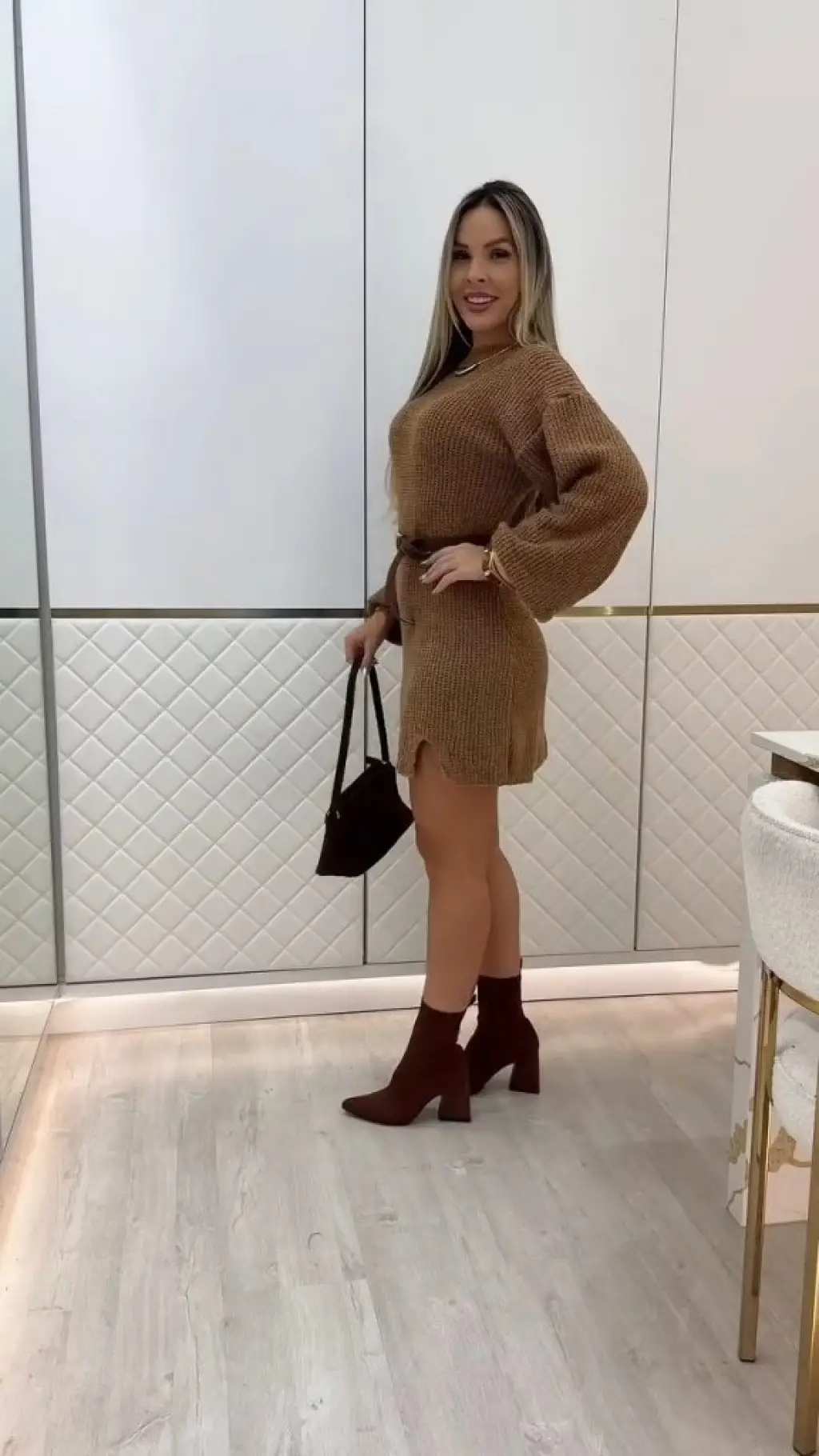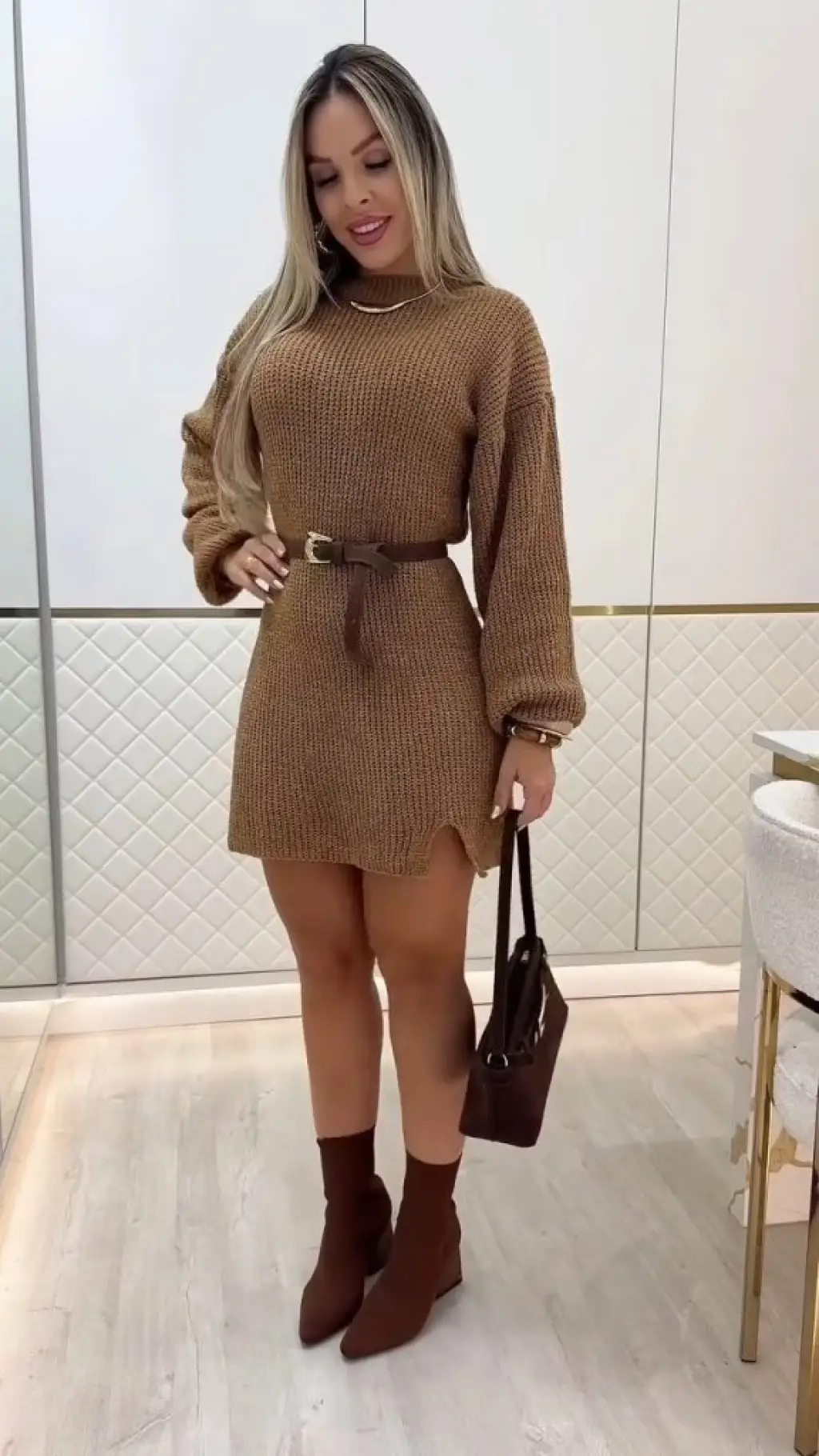 Kadın Uzun Kollu Yuvarlak Yakalı Kısa Triko Elbise