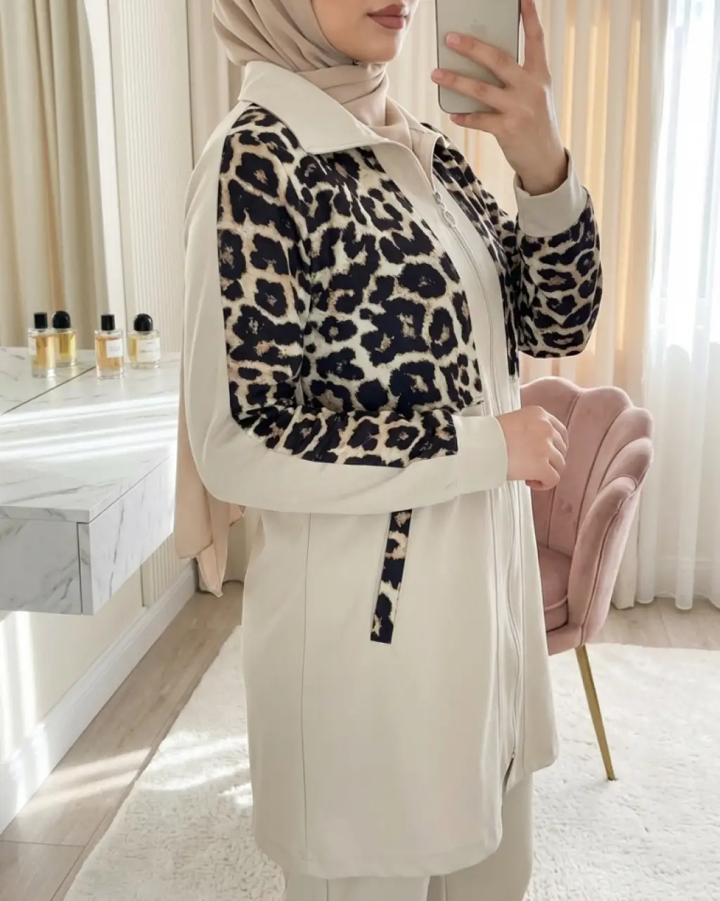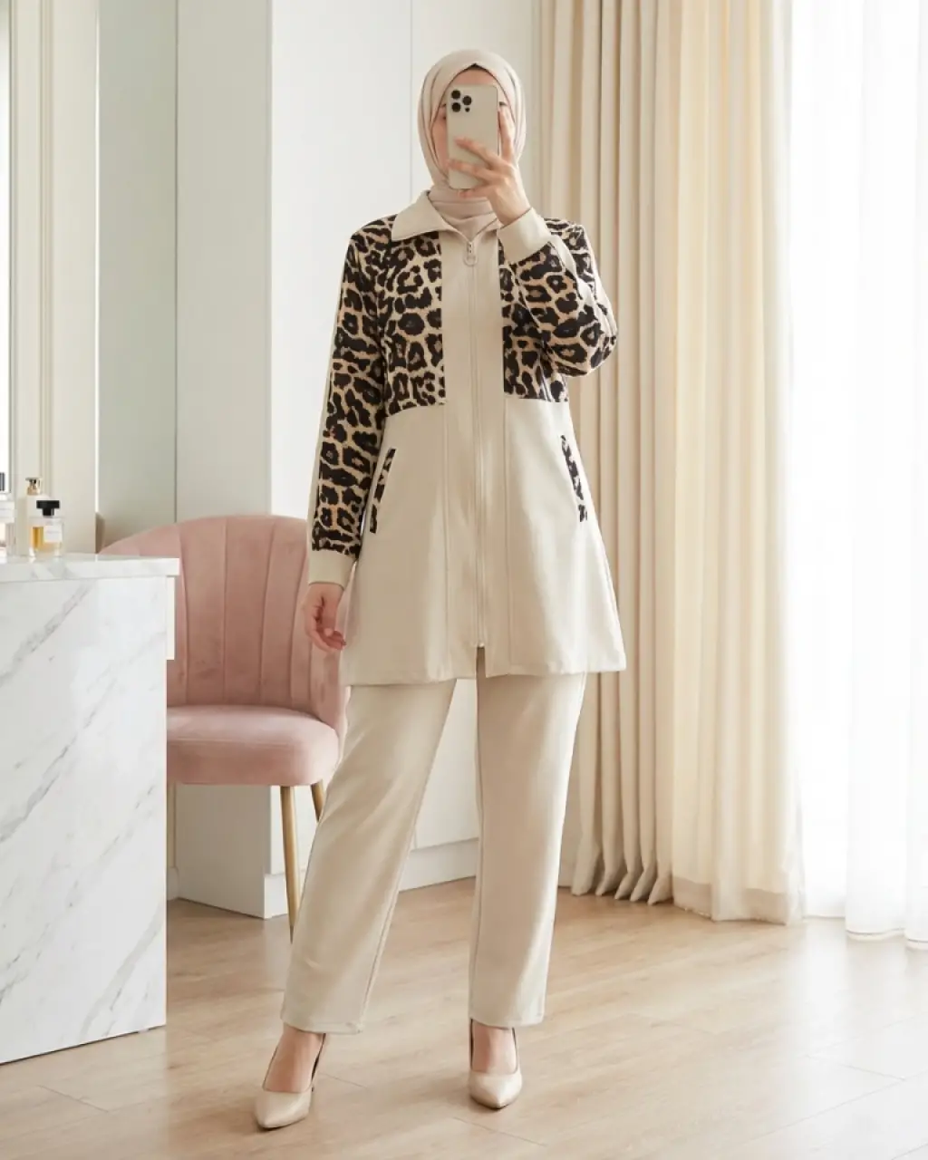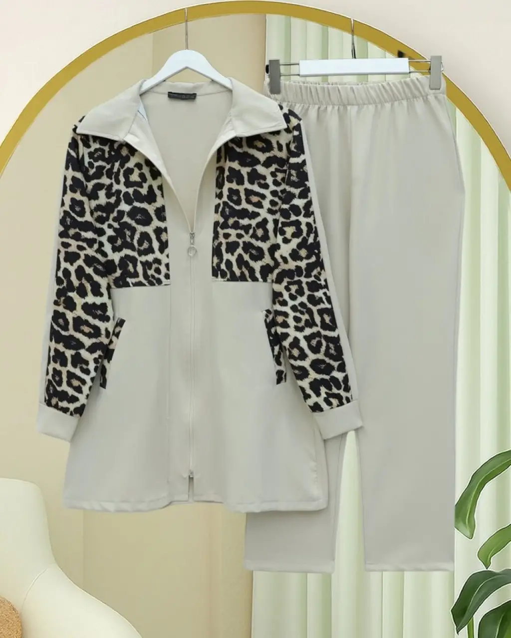 Özel Tasarım Fermuarlı Pantolonlu Takım - Bej