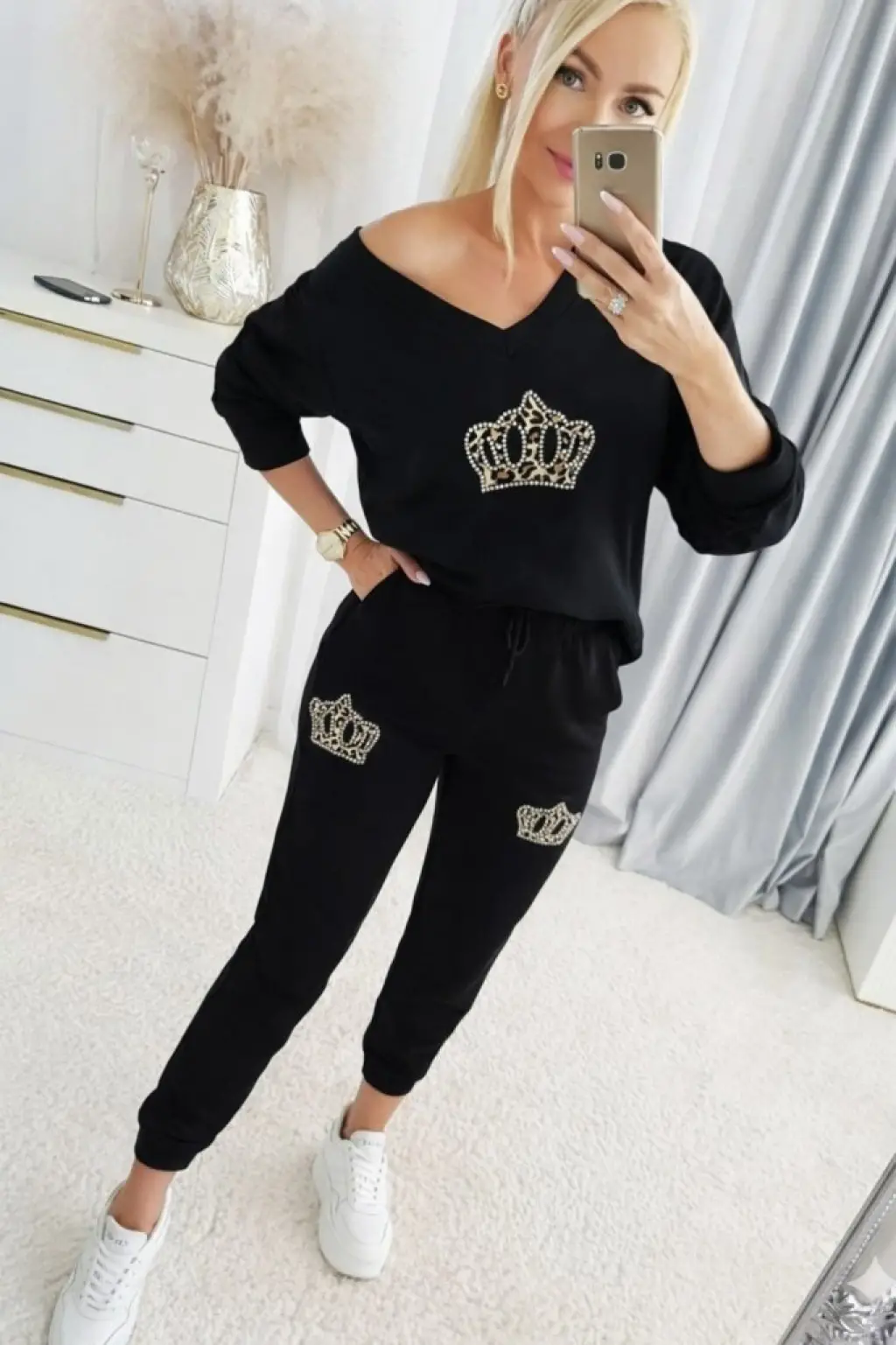 Kadın Uzun Kollu Nope Baskılı Beli Ribanalı Ikili Takım