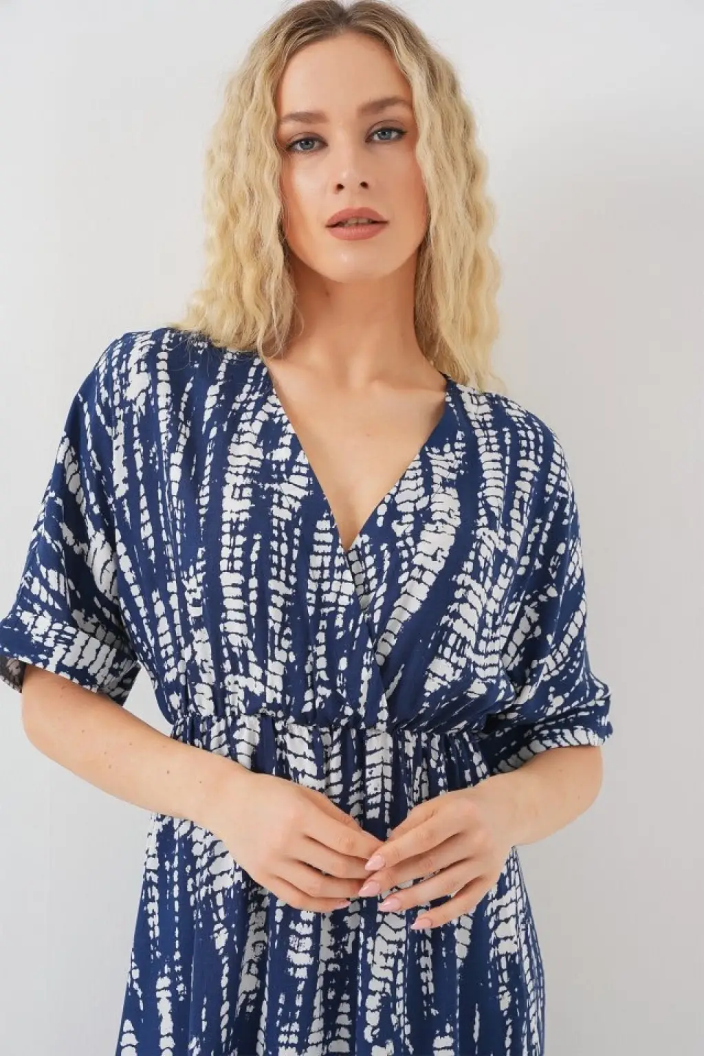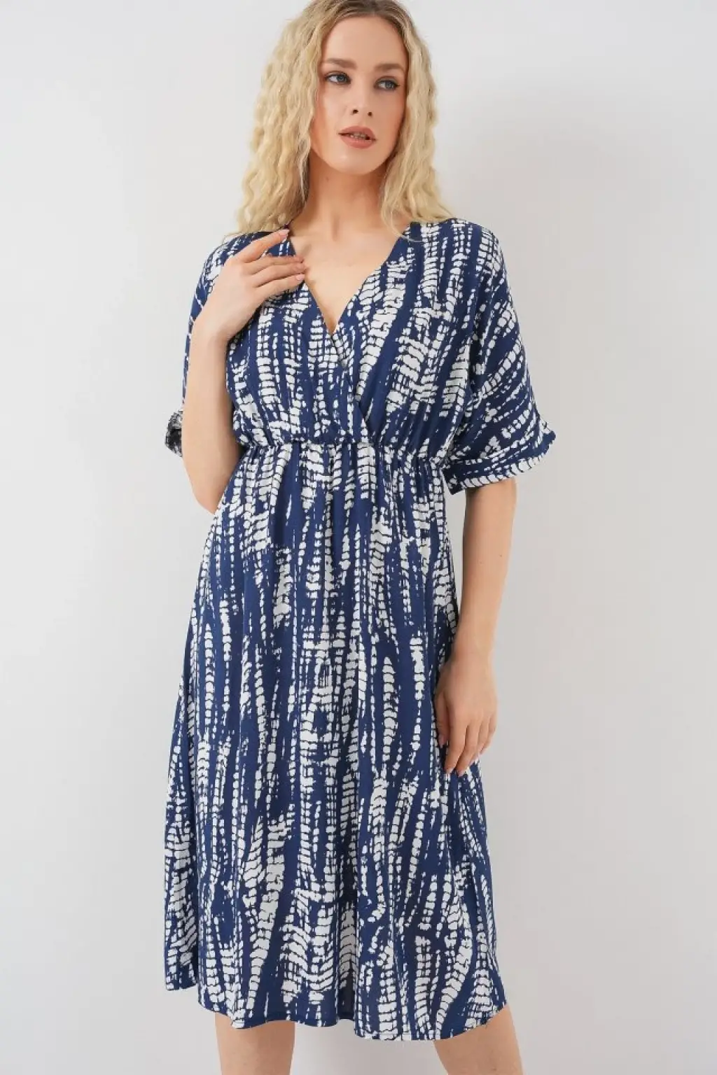 Desenli Kısa Kol Elbise 2569 - Lacivert