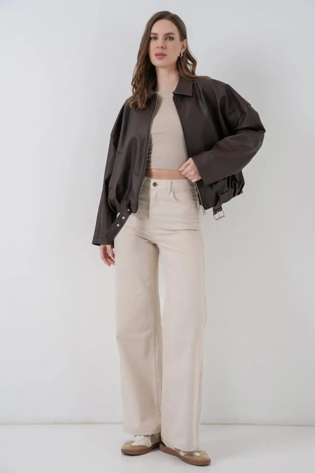 Kemer Detaylı Deri Ceket 1056 - Kahverengi
